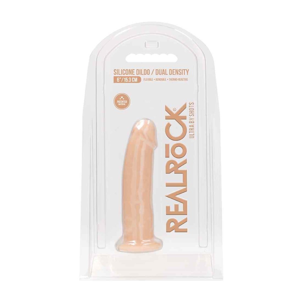 Experience the premium-quality feel of silicone skin on the outside, combined with the revolutionary, dual density filling on the inside. A higher flexibility factor and better density give this dildo a super realistic look and feel, allowing you to bend, shape and mould to your desire. When heated (max 30 secs in Microwave/ 2 mins boiling water), the Thermo Reactive characteristics mean the toy becomes softer and more pliable. On the contrary, when the toy is cooled in the refrigerator it becomes harder, giving plenty of fun options for use. All REALROCK ULTRA DILDOS come with a sturdy suction cup so you can stick it to practically any smooth surface. Deliverable in three exciting colours : Flesh, Brown and Black.