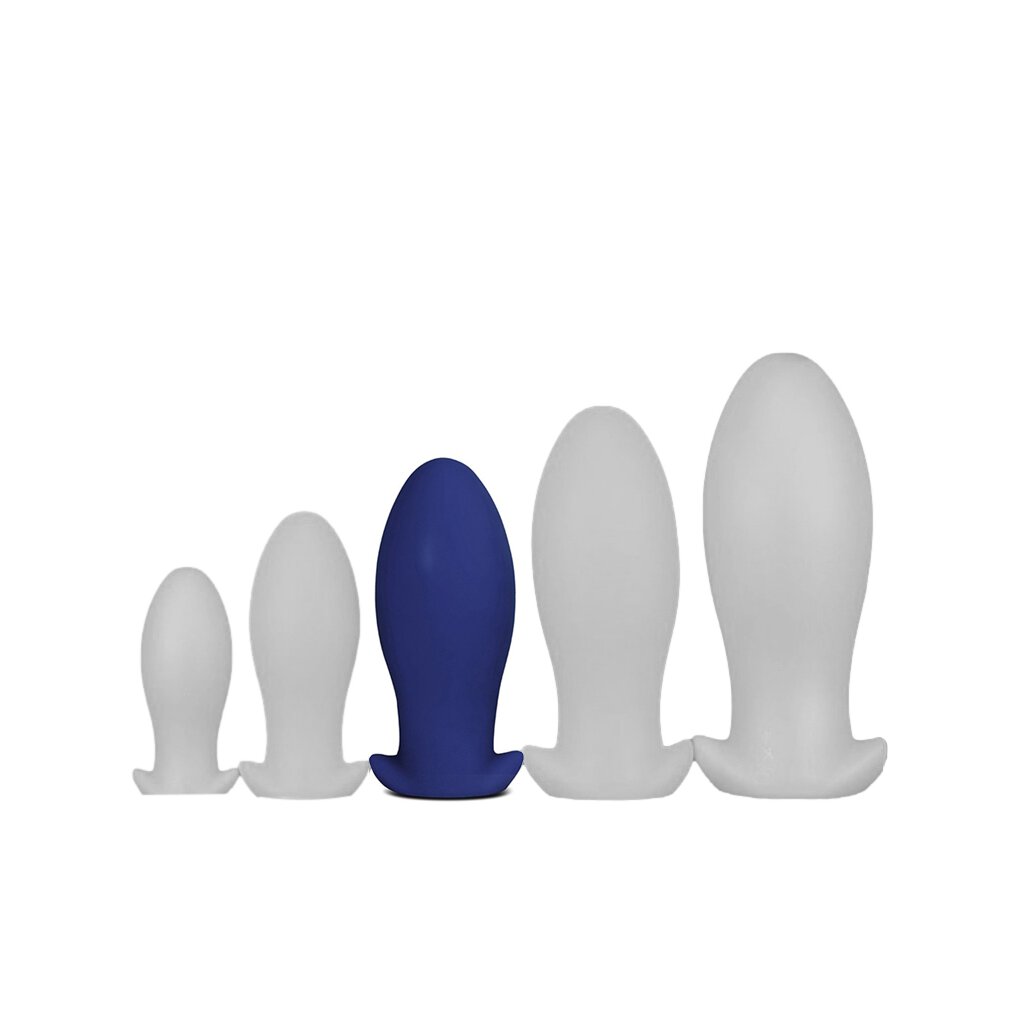 - This navy blue colored plug is a sextoy designed with an egg shape and a smooth surface.