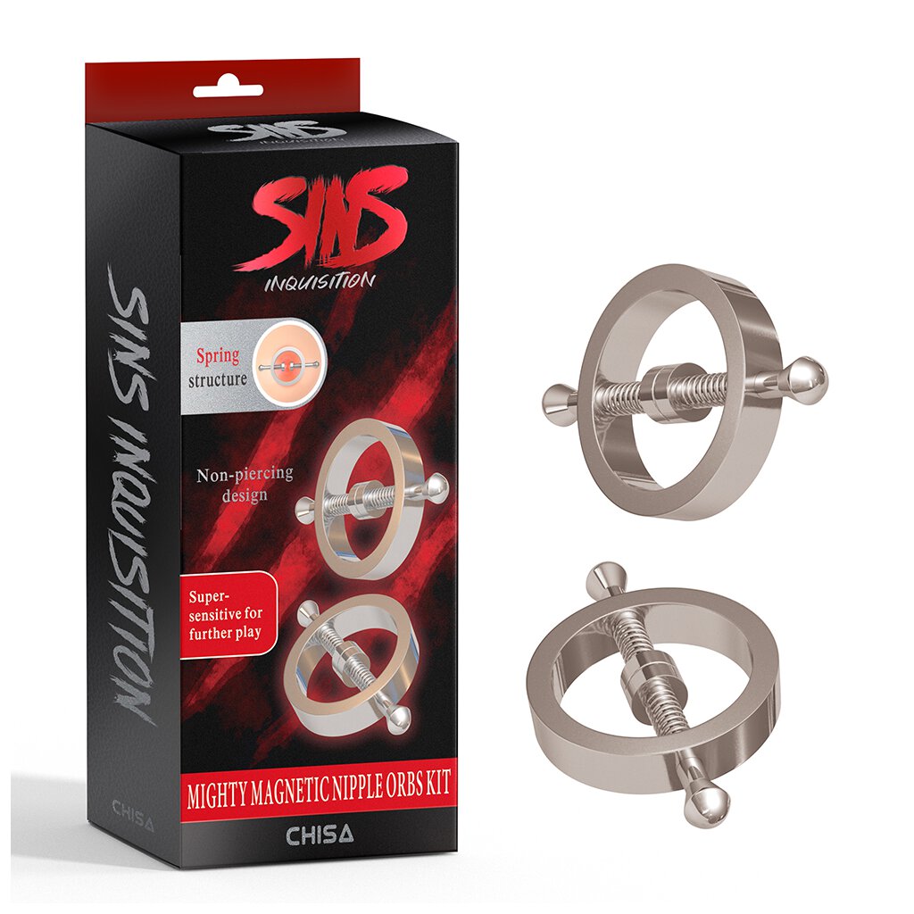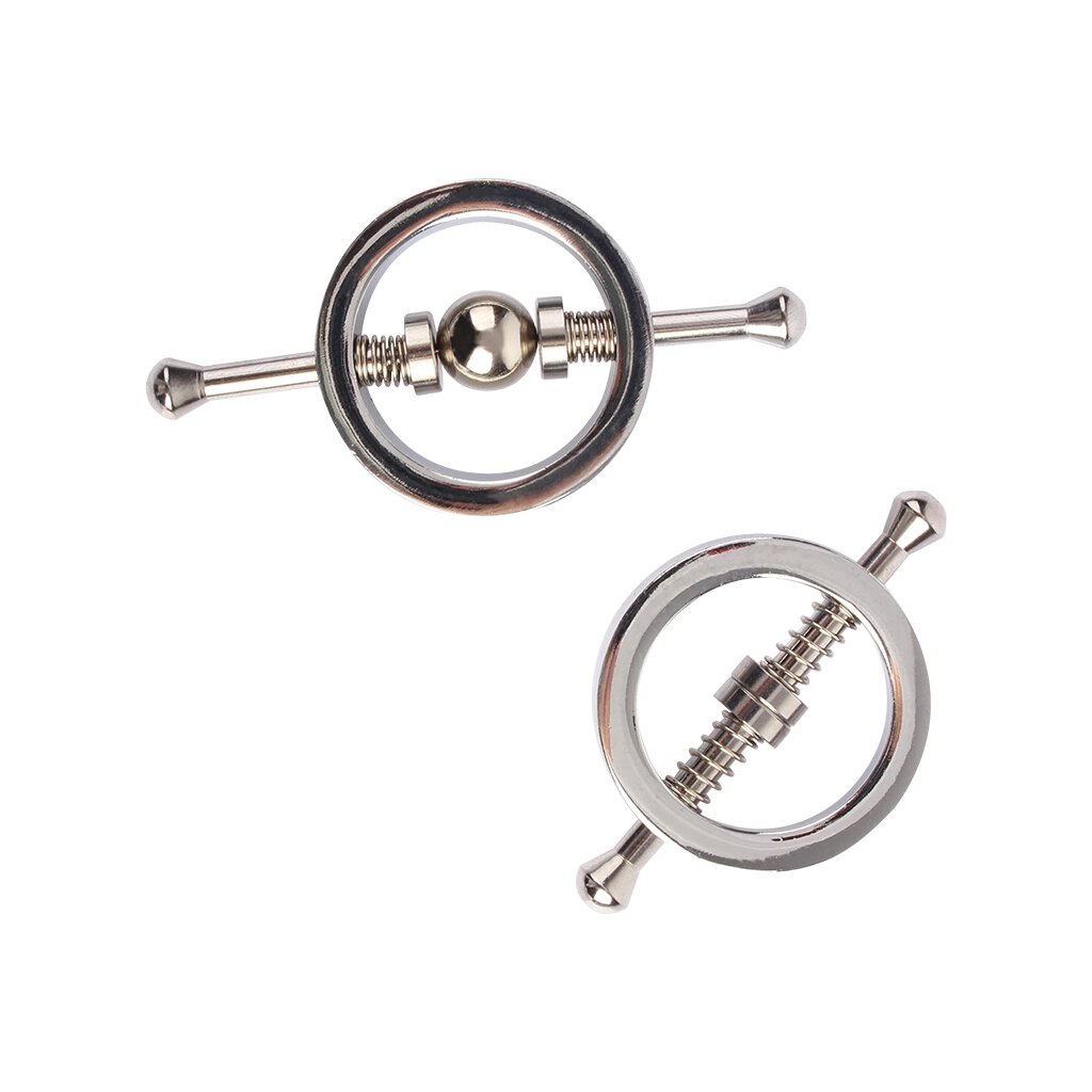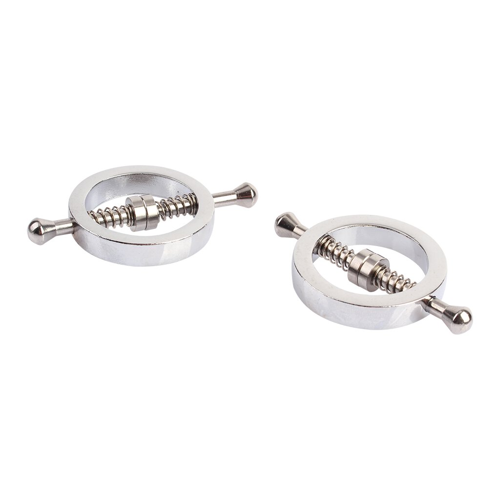 Sins Inquisition Spring Metal Nipple Clamps. Profitez de la stimulation excitante des mamelons avec ces pinces à mamelons. Il s'agit d'un sextoy magnifiquement travaillé et arrondi qui vous procurera un grand plaisir. Avec les goupilles à ressort, ces pinces à mamelons donnent le plaisir ultime avec une pression constante satisfaisante. Une fois qu'ils sont sur les mamelons, c'est vraiment un beau spectacle. Pendant que vous manipulez le jouet, votre partenaire soumis est à votre merci. Mettez votre amant sous pression pendant un moment, puis relâchez ensemble la pression dans un jeu amoureux sensuel. Diamètre : 3,3 cm / Longueur : 5,4 cm / Matériau : acier inoxydable