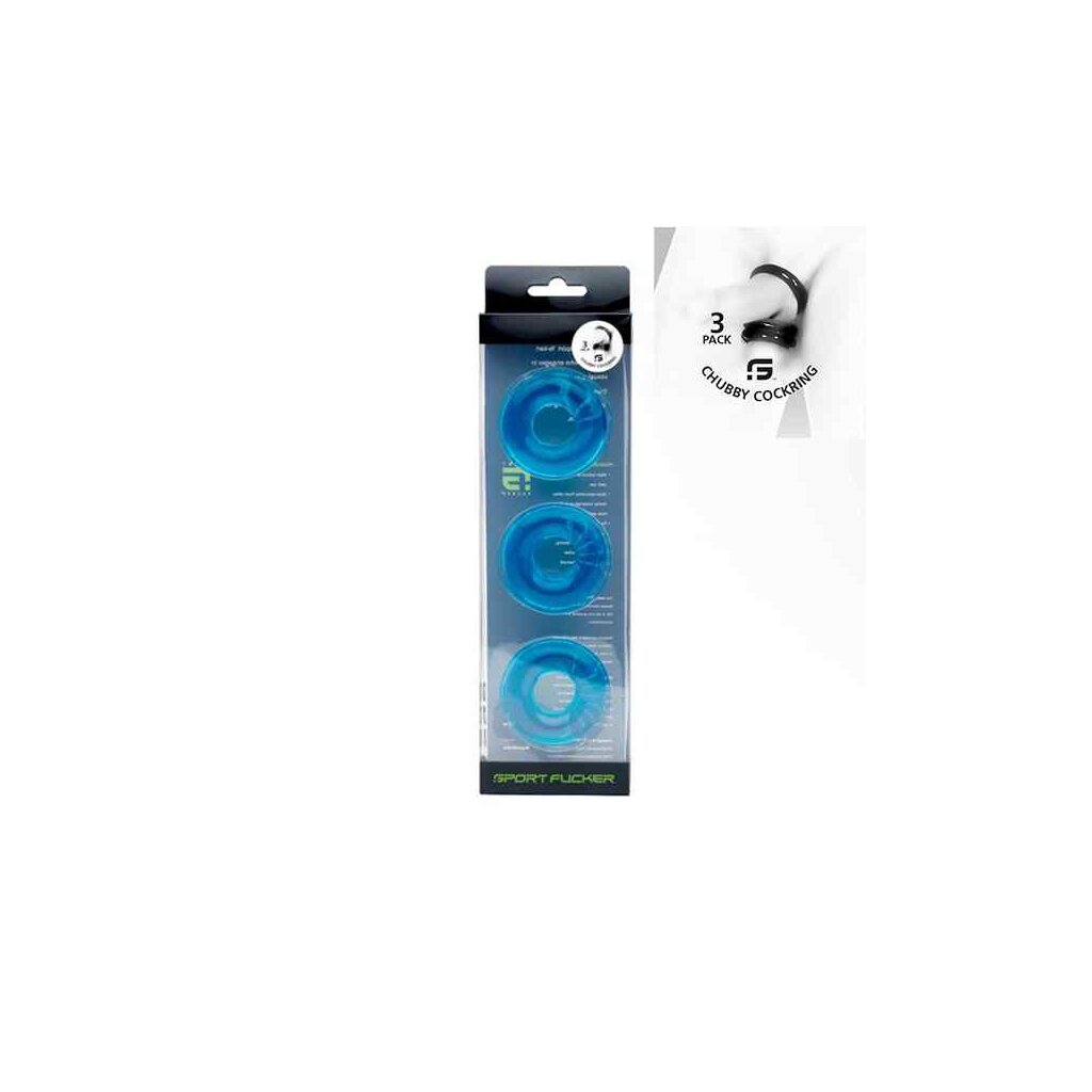 Sport Fucker Chubby Rubber Cock Ring 3-Pack - Ice Blue – Maximum Support and Comfort