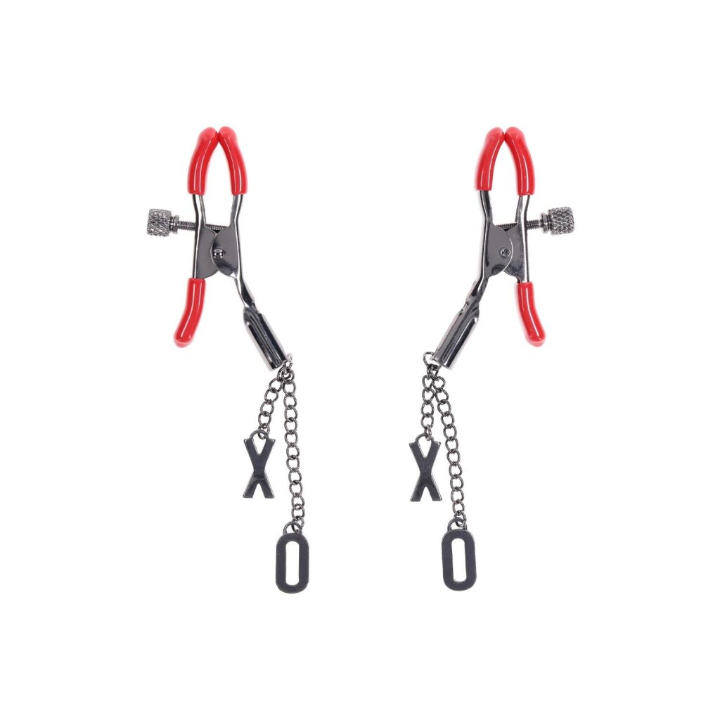 Offrez-vous un mélange de plaisir et de style avec les pinces à mamelons Ex's & Oh's. Ces pinces élégantes en bronze sont dotées d'embouts en caoutchouc rouge doux, conçus pour une expérience confortable et excitante. Parfaites pour les débutantes et les plus expérimentées, la tension réglable permet de personnaliser la pression, garantissant ainsi un ajustement parfait pour toutes les utilisatrices. Les breloques pendantes « X » et « O » ajoutent une touche ludique à chaque instant, alliant esthétique et fonctionnalité. Que ce soit pour un jeu en solo ou une expérience partagée, ces pinces à mamelons sont le complément parfait de votre collection intime, apportant une étincelle d'excitation et de sophistication.