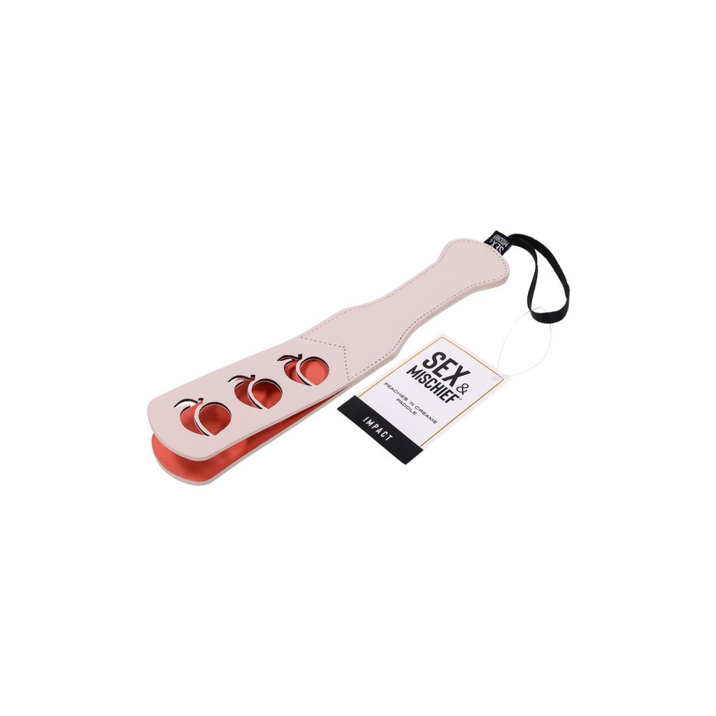 Mit dem Peaches 'n CreaMe Peach Paddle kannst du deinen spielerischen Stößen eine fruchtige Note verleihen! Dieses zierliche, aber dennoch kraftvolle Paddel ist für eine reizvolle Mischung aus spielerischem Spaß und frechen Empfindungen konzipiert. Es ist aus Kunstleder gefertigt und mit entzückenden pfirsichförmigen Aussparungen verziert, die ebenso charmant wie effektiv sind. Die gespaltenen Spitzen sorgen für einen befriedigenden Schlag, während die pfirsichförmigen Aussparungen bei jedem Schlag auf den Pfirsich Deines Partners einen Hauch von Skurrilität hinzufügen. Das Peaches 'n CreaMe Peach Paddle hat die perfekte Größe für ein neckisches Klopfen oder einen festeren Schlag. Es ist das ultimative Accessoire für eine alberne und flirty Szene!