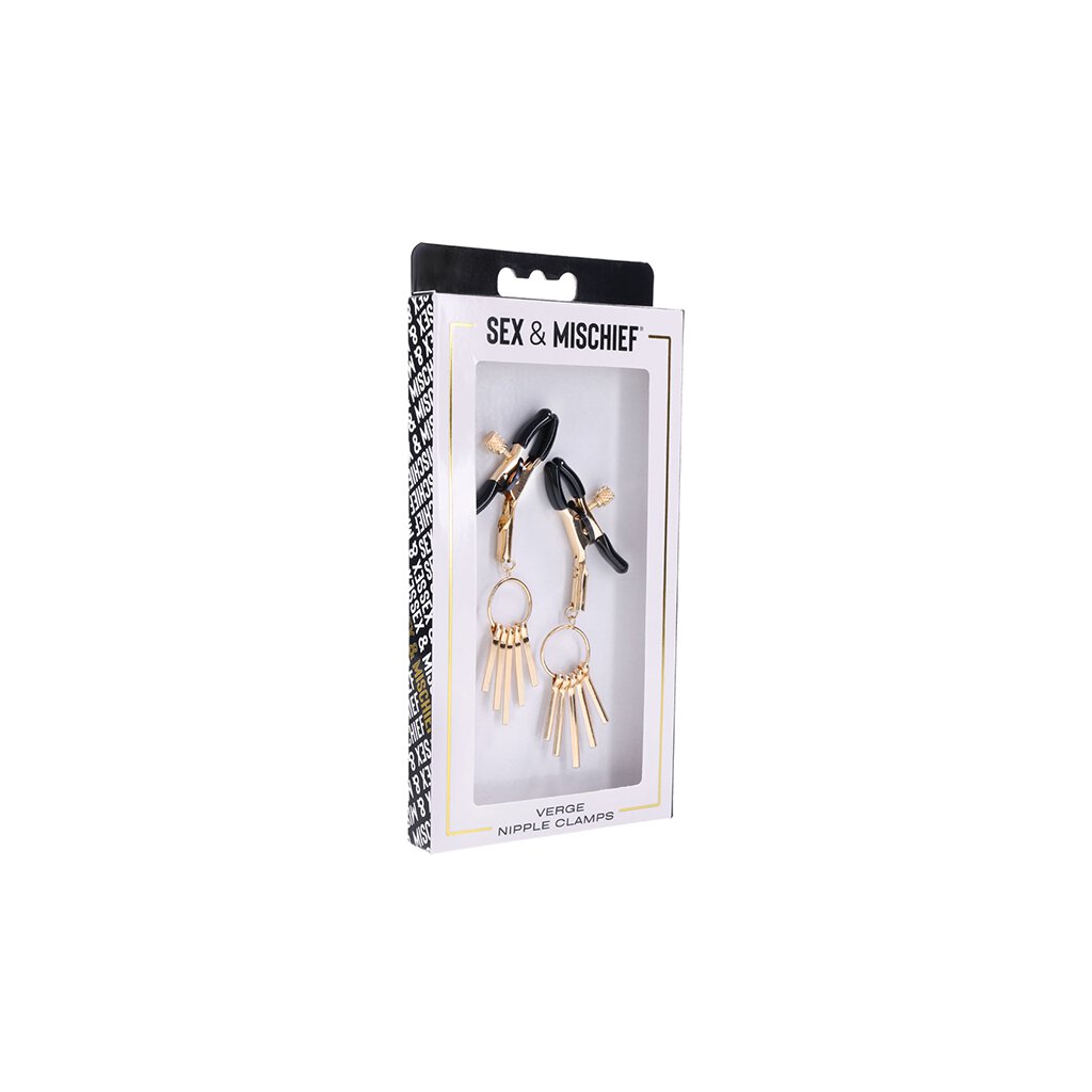 Entfesseln Sie Ihre Fantasie und erforschen Sie Ihre Wünsche mit den Verge Nipple Clamps. Entwickelt, um Ihre Sinne anzuregen, bieten die verstellbaren Klammern genau die richtige Menge an Druck, um Ihre erogenen Zonen zu stimulieren, was ein elektrisierendes Erlebnis schafft, das Sie nach mehr verlangen lässt. Tragen Sie sie beim Solospiel oder teilen Sie sie mit einem Partner, um Ihren intimen Momenten ein aufregendes Element der Abartigkeit hinzuzufügen. Lassen Sie Ihrer Fantasie freien Lauf, während Sie sich den Empfindungen hingeben, die die VergeClamps bieten.
