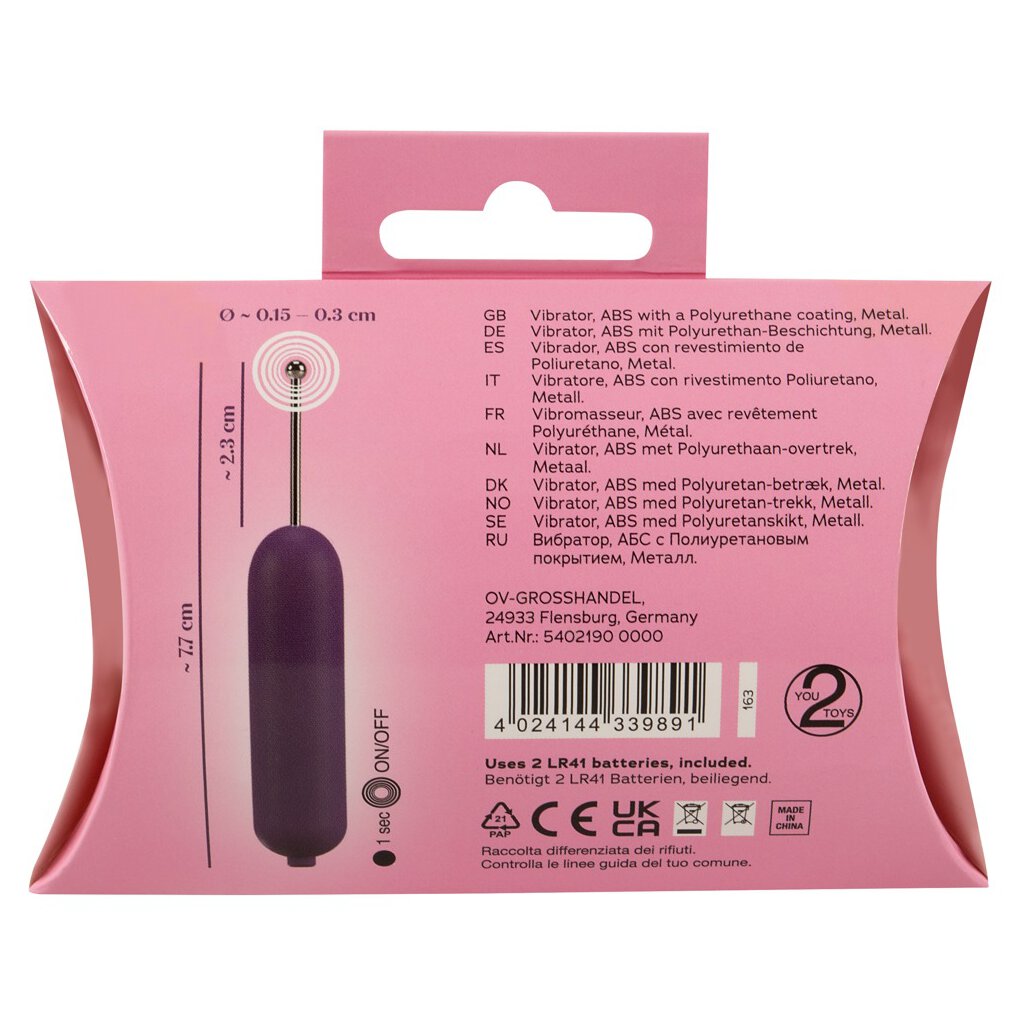 Mini-Vibrator Spot-on Clit Vibrator von You2Toys mit einer winzigen Metallkugelspitze für die präzise Stimulation der Klitoris und anderer äußerer Hotspots. Der kompakte und leichte Klitoris-Vibrator liegt mit seinem seidigen, silikonüberzogenen Griff perfekt in der Hand und lässt sich einfach per Knopfdruck steuern. Er ist perfekt für das Spiel zu zweit oder allein und passt in jede Tasche - perfekt für das Vergnügen unterwegs.