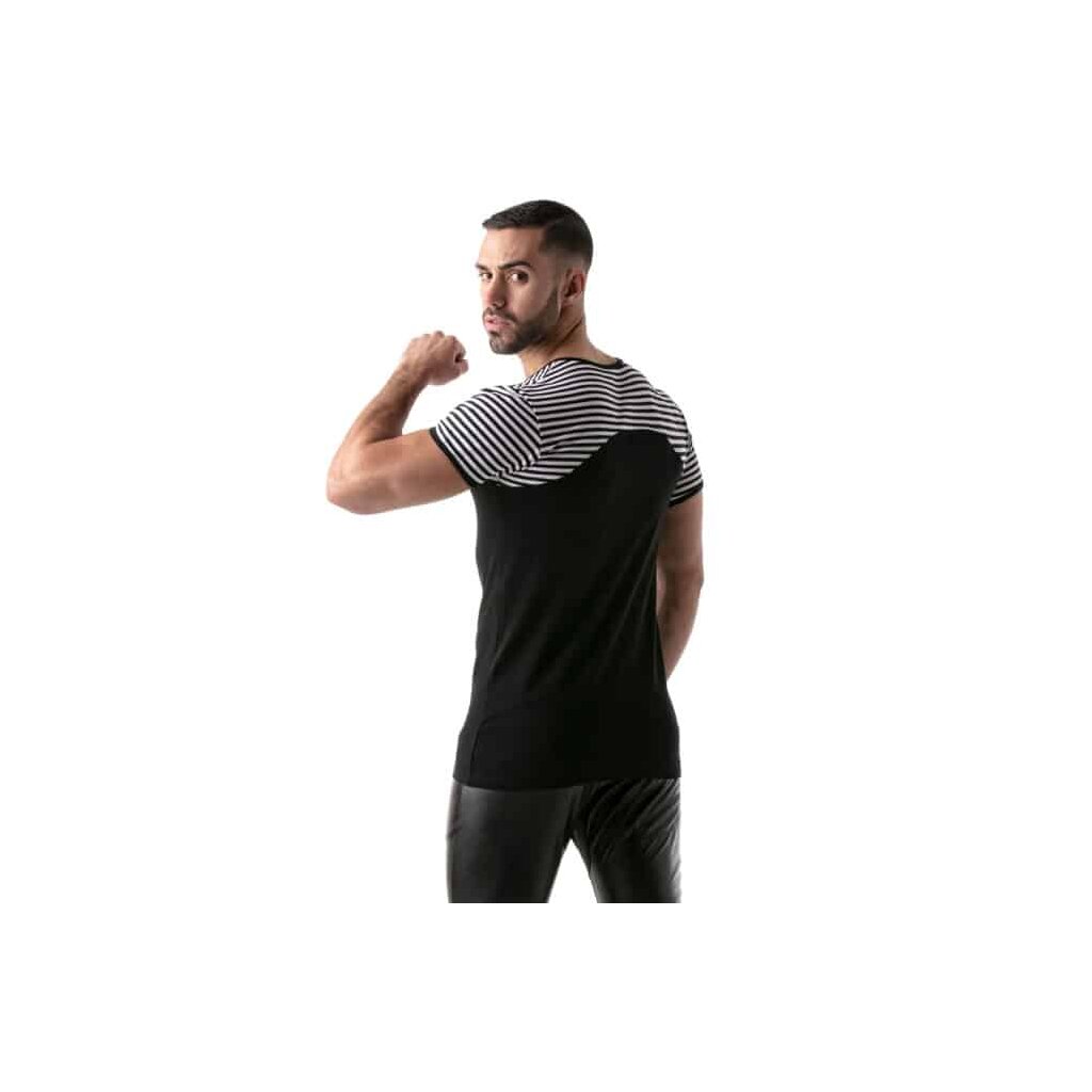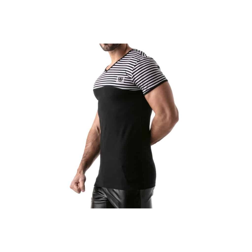 - Sexy men’s t-shirt for wearing when out on the town, at the gym or at home. The Stripes t-shirt is ideal for standing out at sailor- or stripe-themed parties!