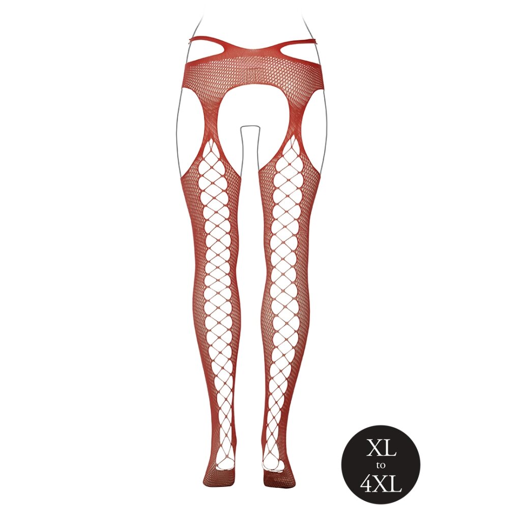 Suspender Pantyhose with Strappy Waist Red Queen Size