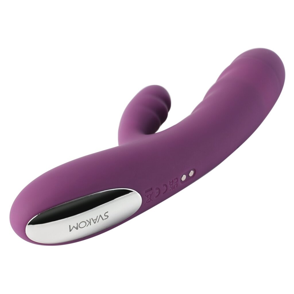 Stimulating wavy rabbit vibrator Avery by SVAKOM with an energetic thrusting function for deeply intense dual pampering of the vagina and clitoris. Soft and silky, the flexible silicone vibrator fits perfectly in the hand and glides over the skin and into intimate depths as if by magic.