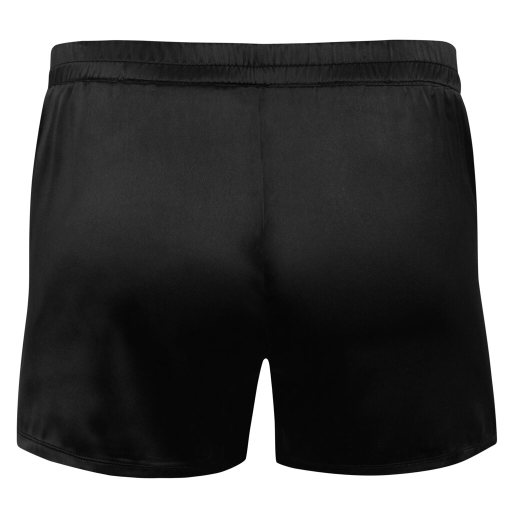 Pantalon noir de Svenjoyment en satin légèrement élastique. Coupe ample pour une tenue décontractée et confortable. Ceinture élastique confortable et fente sur le devant.