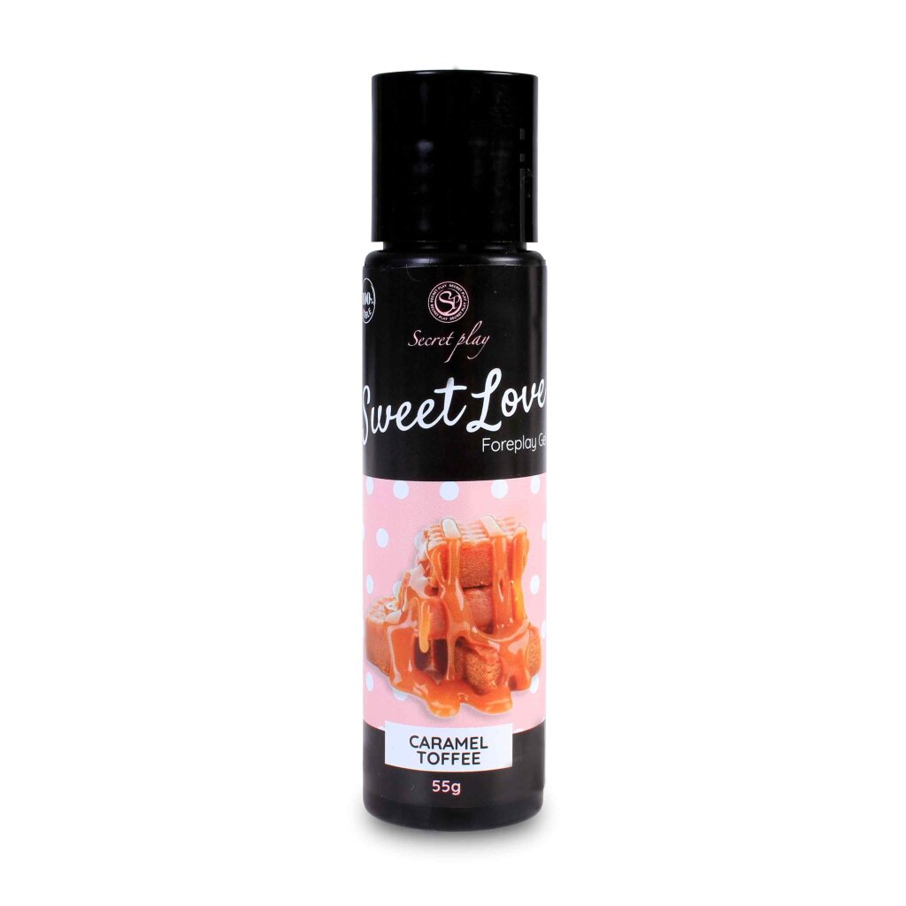 Entdecken Sie die "Sweet Love"-Kollektion von Secret Play. 100% essbare Gele, mit denen Sie den Körper Ihres Partners streicheln können. Ideal sind Brustwarzen, Nacken und andere erogene Bereiche. Diese cremigen Gele werden Sie mit ihren köstlichen Aromen faszinieren, denen Sie kaum widerstehen können. Geschmacksrichtung: Caramel Toffee / enthält 55 g / 100 % essbar / Inhaltsstoffe: TOFFEE SAUCE (48,1%) (CONDENSED AND SWEETENED SKIM MILK (26,7%), SUGAR, WATER, GLUCOSE-FRUCTOSE SYRUP, CARAMEL (8%), BUTTER (4,2%), MODIFIED E1442 STARCH, ARTIFICIAL AROMAS, COLORANT E150a, SALT, EMULSIFIER E471, E202 PRESERVATIVE, ACIDULANT E330) GLYCERIN E422, AROMA ARTIFICIAL, STABILIZER E415, HUMECTANT E1520, SWEETENER E954