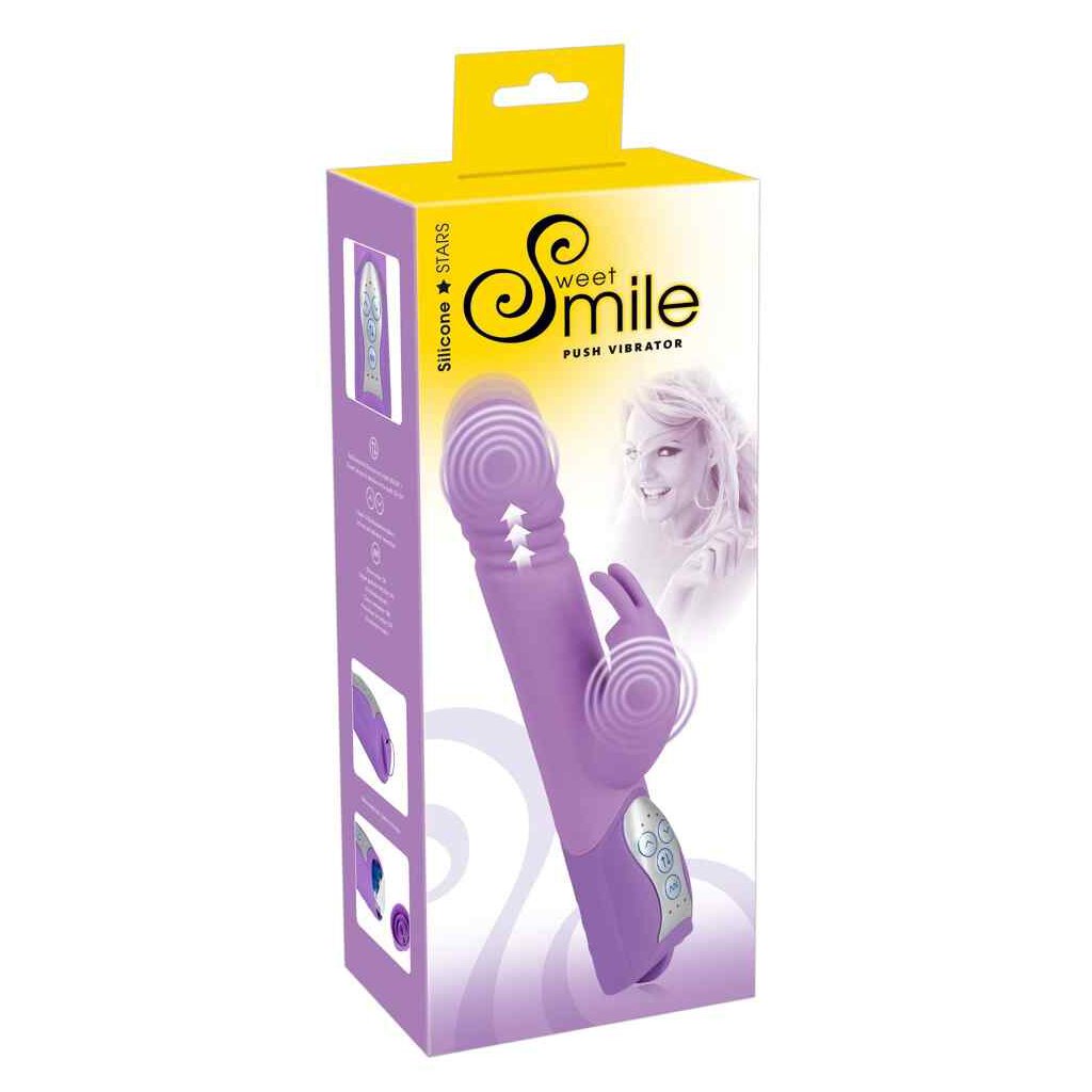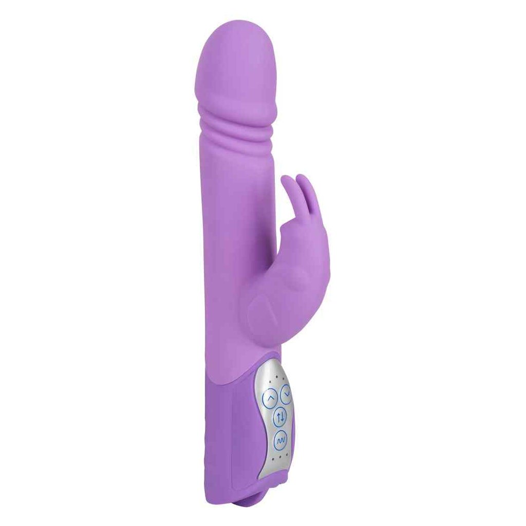Kraftvolles Häschen für lustvolle Momente! Dieser lila Rabbitvibrator mit Klitorisstimulator in Form eines kleinen Hasen mit beweglichen Ohren ist ein wahres Kraftpaket: Er verwöhnt mit 10 verschiedenen Vibrationsmodi und einer erregenden Stoßfunktion in 3 Geschwindigkeiten. 3 lustbringenden Rillen unterhalb der Spitze.