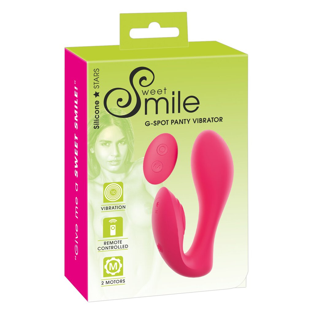 Le vibrateur de culotte à point G ergonomique et idéalement incurvé de Sweet Smile est doté de 2 moteurs - un dans le vibrateur flexible du point G et un dans le stimulateur clitoridien à structure de riz. Les 10 modes de vibration peuvent être contrôlés séparément par la télécommande sur simple pression d'un bouton - même par le partenaire (portée jusqu'à 10 mètres). Les vibrations silencieuses mais puissantes se font sentir à tout moment et en tout lieu - discrètement, sans que personne ne s'en aperçoive ! Le matériau en silicone de haute qualité permet une insertion facile et une sensation très agréable sur la peau lors du port et du chouchoutage.