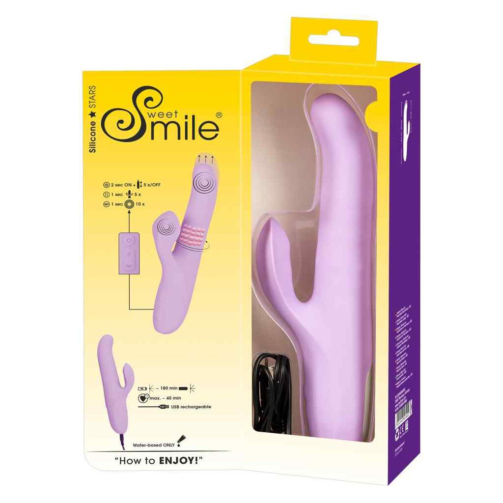Le vibrateur Thrusting Pearl de Sweet Smile avec un vibrateur clitoridien flexible et des billes rotatives dans la tige pour un dorlotage complet efficace en termes d'orgasme jusqu'au point G.