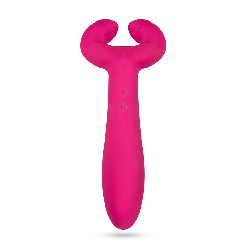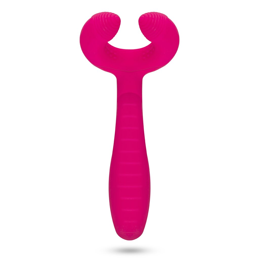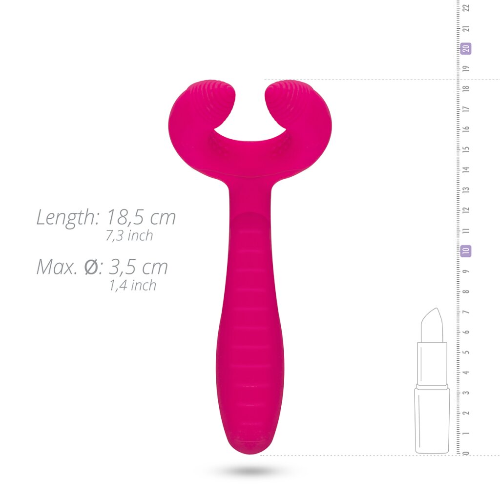 Vivez des moments inoubliables de plaisir avec Votre partenaire grâce au vibrateur pour couples unique ! Ce jouet multifonctionnel offre une merveilleuse stimulation pour Vous et Votre partenaire. Les deux extrémités du vibrateur peuvent être utilisées pour créer différentes sensations. Le côté rond peut être utilisé comme masturbateur en glissant l'anneau à picots autour du pénis et en le déplaçant lentement de haut en bas. Les deux points de l'anneau sont parfaits pour une stimulation ciblée du clitoris. L'autre côté du jouet est idéal pour la pénétration anale et vaginale. Le manche nervuré avec son design courbé masse efficacement le point G ou la prostate.