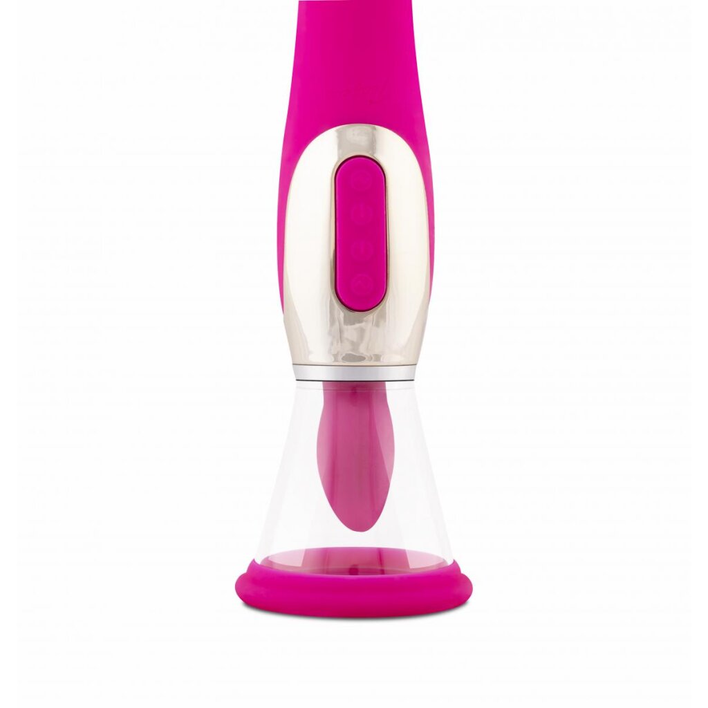 Vivez des moments de plaisir incomparables avec la pompe à plaisir avec vibrateur point G en rose ! Cette pompe innovante augmente le flux sanguin vers Vos zones érogènes et procure une merveilleuse stimulation par succion. Votre vulve gonflée et brillante sera un spectacle excitant pour Vous dans le miroir ou pour Votre partenaire. La langue intégrée gâte parfaitement Votre clitoris grâce à ses 7 réglages de stimulation différents. À l'autre extrémité se trouve un vibrateur point G avec 10 modes de vibration et un design nervuré pour plus de plaisir. Toutes les fonctions peuvent être contrôlées séparément pour personnaliser Votre expérience.