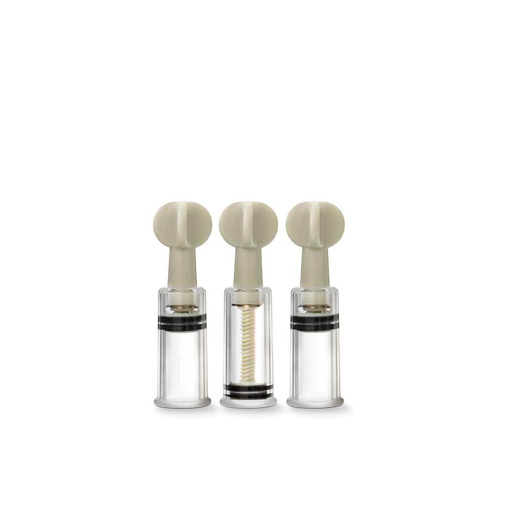 Temptasia Clit and Nipple Twist Suckers apporte un engorgement et une sensibilité accrue à vos zones les plus sensibles. Chaque cylindre transparent procure un engorgement et augmente la sensibilité. Chaque cylindre de succion de poche de ce set triple est entièrement réglable. Les ventouses n'ont pas besoin de pompe. La succion est ajustée en tournant la partie supérieure. Placez le cylindre sur votre clito ou votre mamelon, puis tournez la partie supérieure pour l'ajuster. Les cylindres entièrement réglables vous permettent de jouer avec différents niveaux de plaisir. Plus vous tournez le cylindre, plus vous créez de succion et de sensibilité. Lubrifiez l'ouverture du cylindre pour augmenter la succion et le confort. Utilisez un, deux ou les trois en même temps ! Fabriqués en acrylique sans danger pour le corps, les suceurs Temptasia sont faciles à utiliser et à nettoyer.