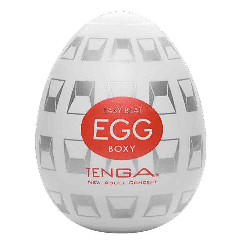 Masturbateur jetable compact Egg Boxy de Tenga avec une structure de stimulation étagée excitante et polyvalente à l'intérieur. Le manchon masturbateur ultra flexible se trouve à l'intérieur de la coquille en forme d'œuf et est utilisé ensemble pendant la branlette avec le lubrifiant inclus.