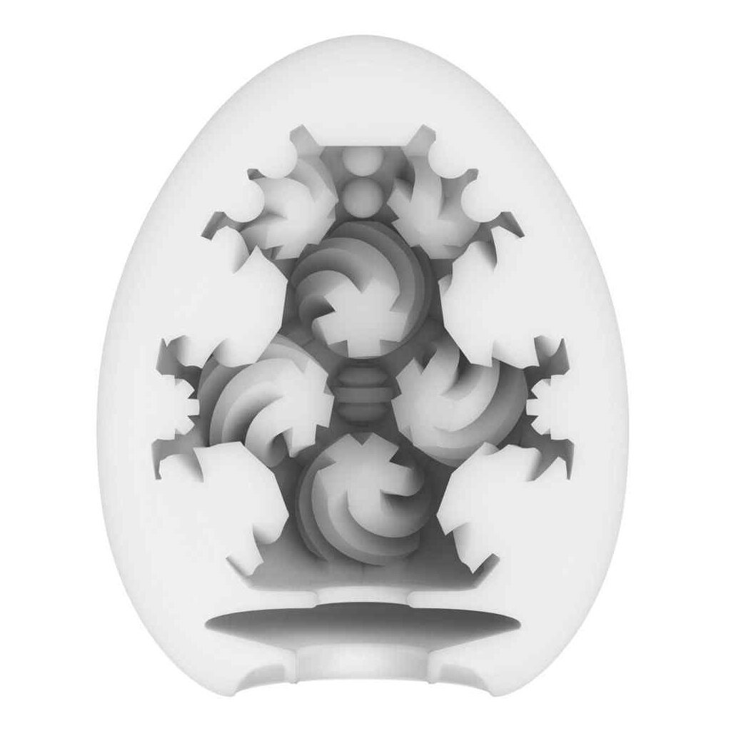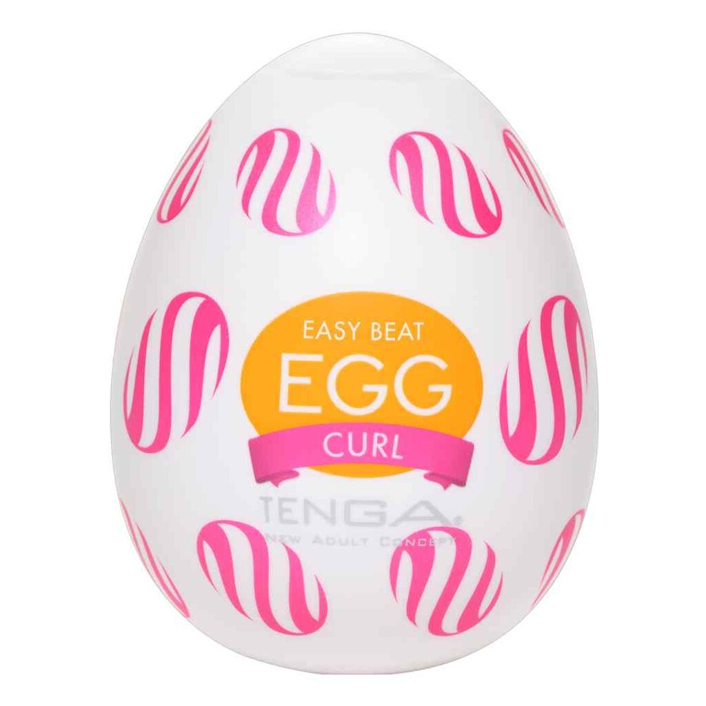 Masturbateur jetable compact Egg Curl de Tenga avec une structure d'irritation de la balle en spirale nervurée à l'intérieur. Le manchon masturbateur ultra flexible se trouve à l'intérieur de la coquille en forme d'œuf et est utilisé ensemble dans la branlette avec le lubrifiant inclus.