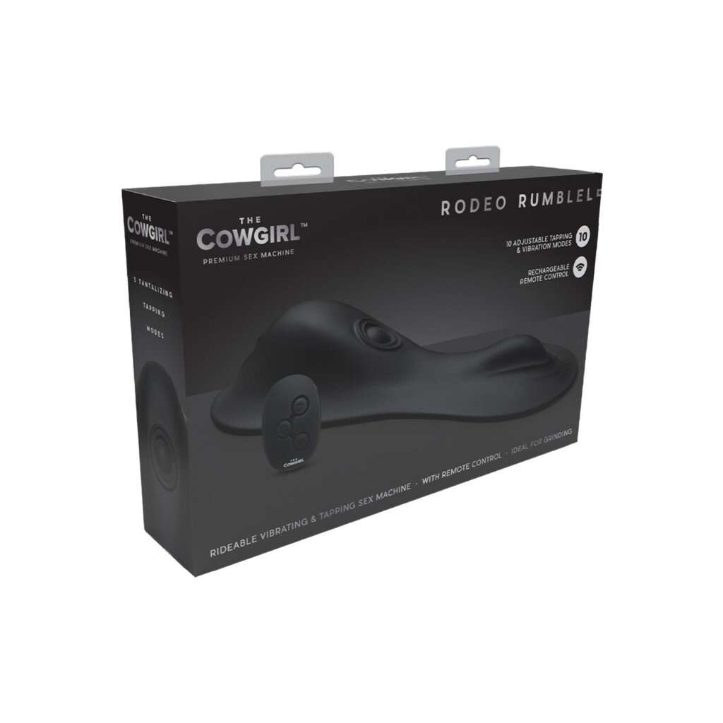 Introducing the Cowgirl Rodeo Rumbler, a rideable vibrating and pounding clitoral sex machine. This powerful and discreet device allows for hands-free rubbing, allowing users to fully immerse themselves in the experience. The clitoral tapper provides a teasing sensation that promises deeper satisfaction, alternating between gentle tapping motions and exciting thrusts.