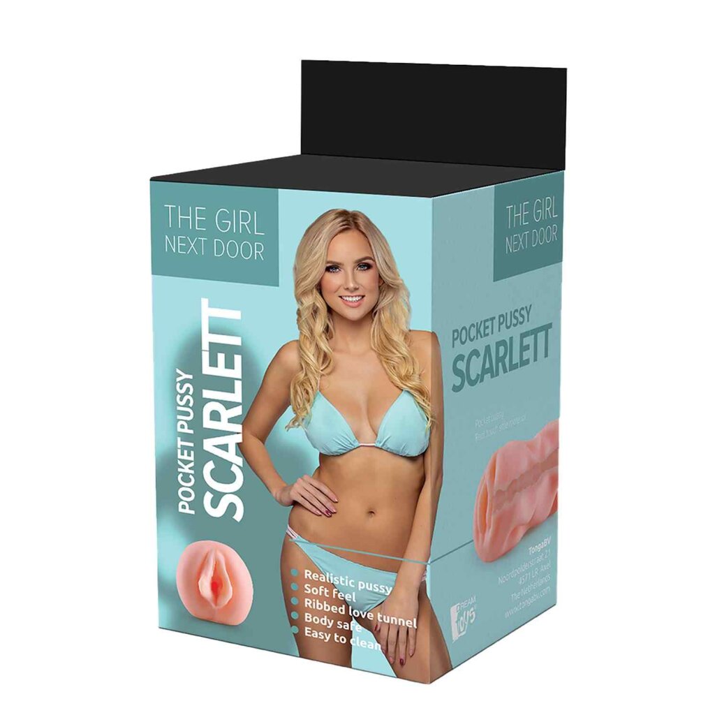 Pocket pussy with super soft and realistic texture inside for exciting sensations. Scarlett is the Girl Next Door that turns you on! Made of long lasting, real-feel TPE, Scarlett has a stretchable vagina. Body safe, free of phthalates and latex.