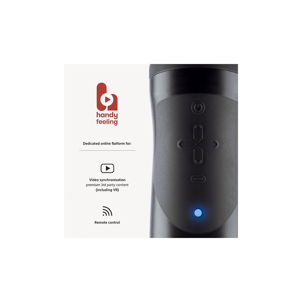 Die Länge und Geschwindigkeit der Auf-und-Ab-Bewegung lassen sich individuell und stufenlos am Gerät einstellen. Dank des kraftvollen Motors schafft es der Handy auf bis zu 10 Bewegungen pro Sekunde mit einer maximalen Länge von 11 cm. Durch den integrierten Dual Core Prozessor kann der Interactive Stroker auch über eine verschlüsselte WiFi and Bluetooth 4.2-Verbindung mit dem Internet verbunden werden. Über die Webseite handyfeeling.com können von überall auf der Welt die Länge und Geschwindigkeit der Bewegungen ferngesteuert werden. Sowohl voreingestellte Hubmodi „Tease“, „Blowjob“ oder „Deepthroat“ können hier aktiviert, als auch zufällige per Parameterdefinition generiert werden. Dies funktioniert auch innnerhalb einer gewünschten „stroke range“ (Hubzone), wenn z.B. nur das obere Drittel des Penis stimuliert werden soll. Außerdem findet sich dort Videomaterial, mit dem der Handy synchronisiert werden kann – die Auf-und-Ab-Bewegungen der Sleeve sind dann perfekt abgestimmt auf das Online-Video. Kann auch mit VR-Brillen verbunden werden.