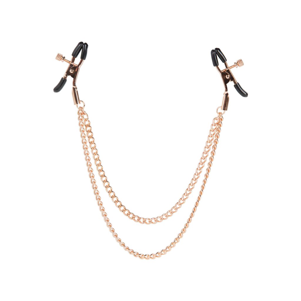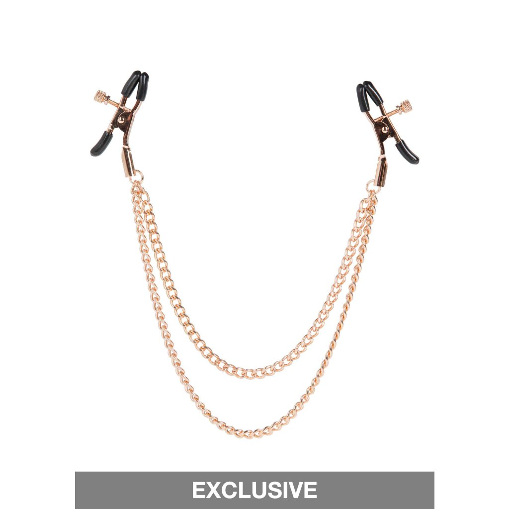 Get ready to heat up the night. Our exciting and beautiful Entice™ - Tiered Intimate Clamps are designer adornments with sensual style. This set of 2 multi-use designer clamps features a high-quality glittery tiered chain for added appeal. They’re fully adjustable by an easy turn of the screw and are accentuated with soft, comfortable pads.Non-tarnishing and nickel-free, these tiered clamps offer the ultimate in bondage styling. You’ll experience elegant and playful sensuality that will take your fantasies to the next thrilling level with this private jewelry. The clamps and chain are crafted from a clip of nickel-free iron and the pads are phthalate-free PVC. You’ll love the sexy exciting look that will offer some extra personal shine.