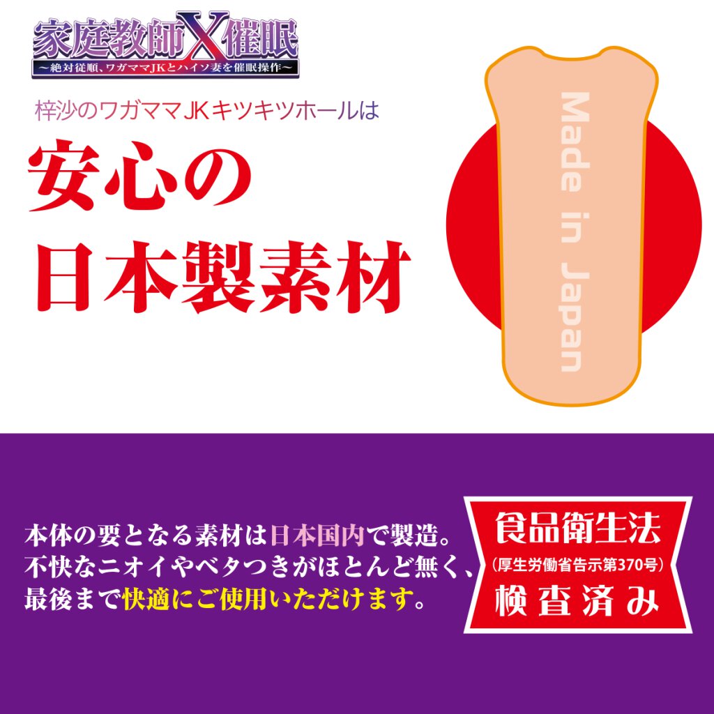 Das "JK Kitsukitsu Hole" wird in Japan hergestellt und verwendet feinstes Elastomermaterial von "DNA Gueroult I". Dieses Material kann ohne Bedenken sogar abgeleckt werden, denn es hat sämtliche Lebensmittelkontrollen bestanden. Ein hochwertiges Material, das strengen Kontrollen unterzogen wurde. Kein Kleben und keine unangenehmen Gerüche. Selbst für Anfänger ist dieses Onahole perfekt geeignet. Und damit du direkt nach der Lieferung mit dem Spielen loslegen kannst, ist im Lieferumfang noch eine kleine Portion Gleitmittel enthalten.