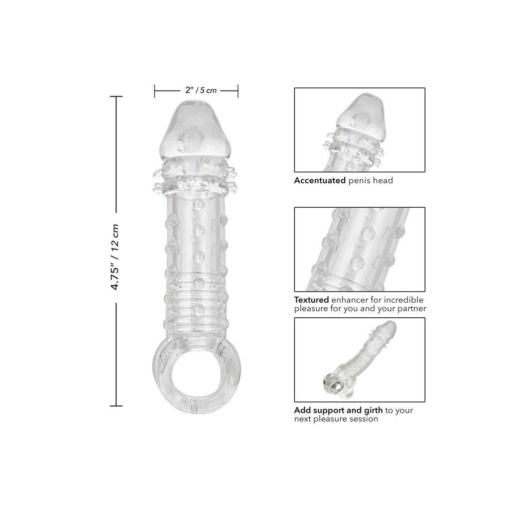 Genieße Deine und Eure gegenseitige Befriedigung mit dem leistungsstarken Ultimate Extender. Während das geschlossene Ende der Hülse und die gerippte Kammer ihn erregen, wird der zusätzliche Umfang, die aufregende Noppenstruktur und die 2 Zoll mehr Länge Ihre Frau zum Beben bringen. Der eingebaute Hodensackgurt und die dicke Hülse unterstützen die Erektion und erhöhen die Ausdauer, um das Vergnügen für jedes Paar zu verlängern und zu intensivieren. Steigere Dein Vergnügen und gib Dich niemals mit weniger zufrieden, wenn es um die Größe geht. Unser super dehnbarer Extender mit unterstützendem Hodensackriemen wird Dich und Deinen Liebhaber nach mehr, mehr, mehr verlangen lassen. Das weiche, dehnbare TPE ist unparfümiert, phthalatfrei und pflegeleicht, damit Deine empfindlichsten Stellen gesund und munter bleiben. Genieße die einfache Reinigung dieser wartungsfreien Stimulatorhülse, wasche sie einfach mit Seife und warmem Wasser vor und nach jedem Gebrauch. Verwende reichlich Gleitmittel für ein einfaches Einführen.