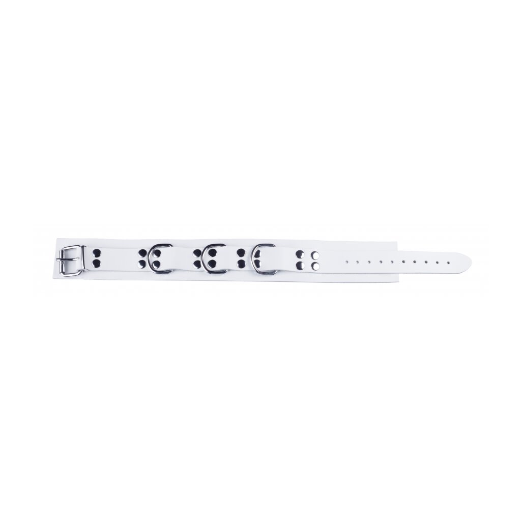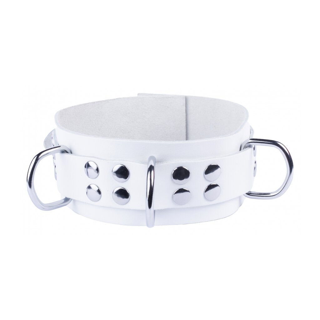 This leather necklace is an accessory designed with a width of 5.5 cm bringing a SM style. The fasteners and rings are made of metal. With a neck size from 38 to 52 cm. Genuine cow leather. Vegetable tanning. Weight: 230 gr / Width: 10.0 cm / Depth: 2.0 cm / Height: 56.0 cm