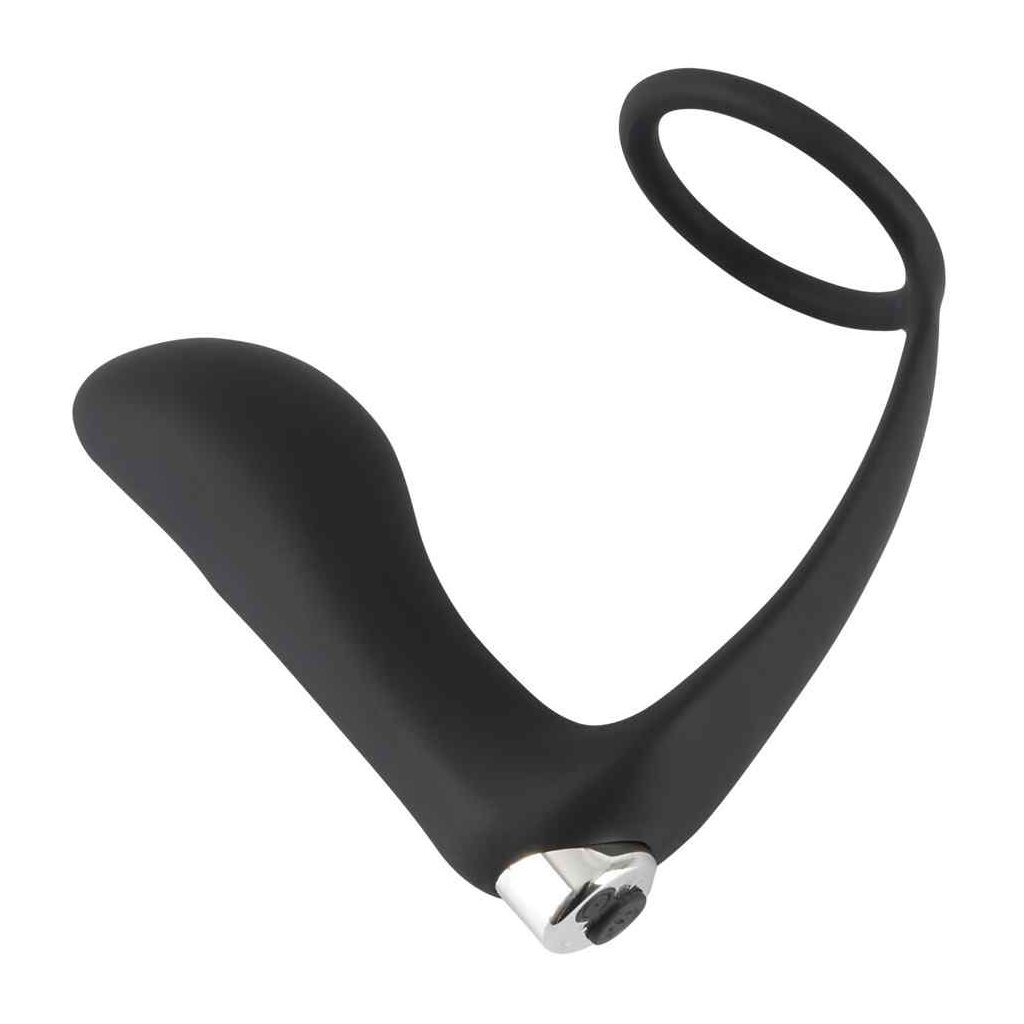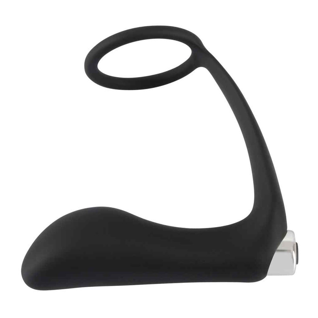 Velvety soft Vibro-plug with an integrated perineum bar and cock ring. The removable vibro-bullet is rechargeable and pleasures the prostate with 10 powerful vibration modes. Includes a USB cable.