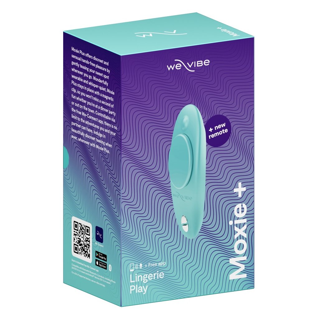 Lay-on and panty vibrator Moxie+ from We-Vibe for clever and discreet pleasure. With 10 vibration modes that can be controlled comfortably via the new remote or We-Connect app (worldwide) on a smartphone – even by a partner. Additional stimulation modes, voice, chat and video functions are also integrated into the app.