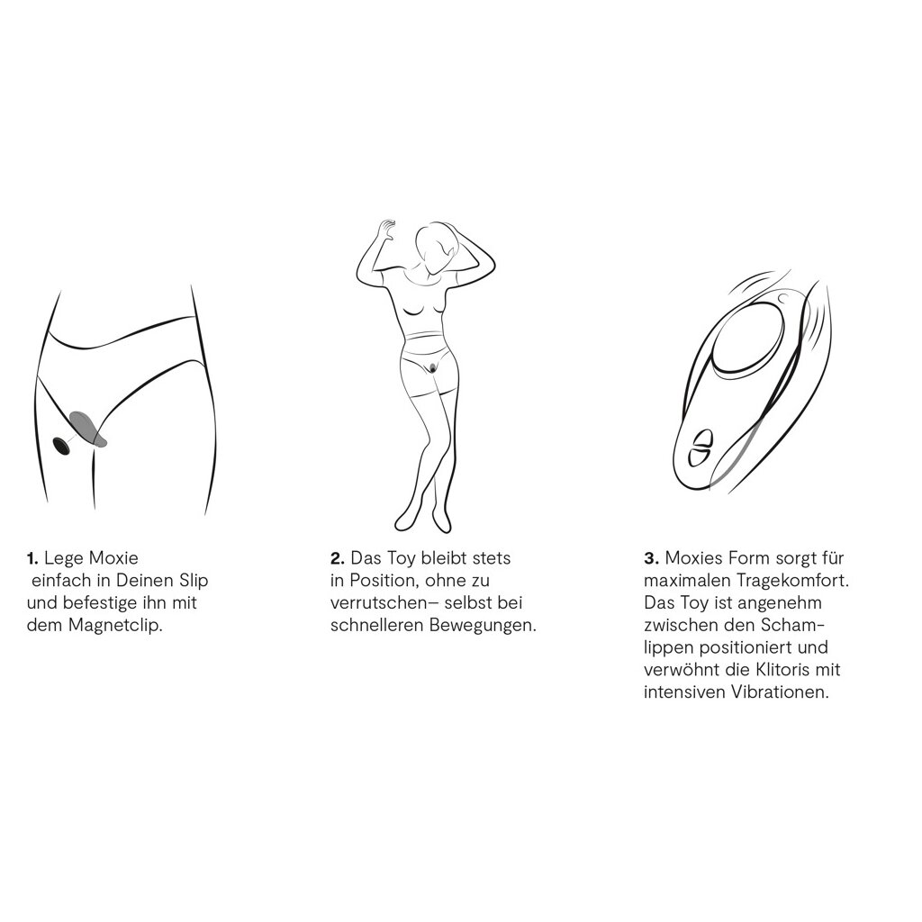 The silicone vibrator Moxie+ can be attached to the panties with its non-slip magnet and is particularly discreet and quiet when used. The silky soft Moxie+ is perfectly shaped so that the labia are slightly spread and the clitoris is directly stimulated. Since it is waterproof, it can also be used underwater.