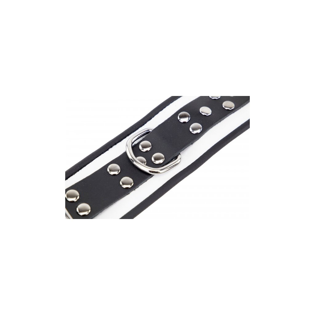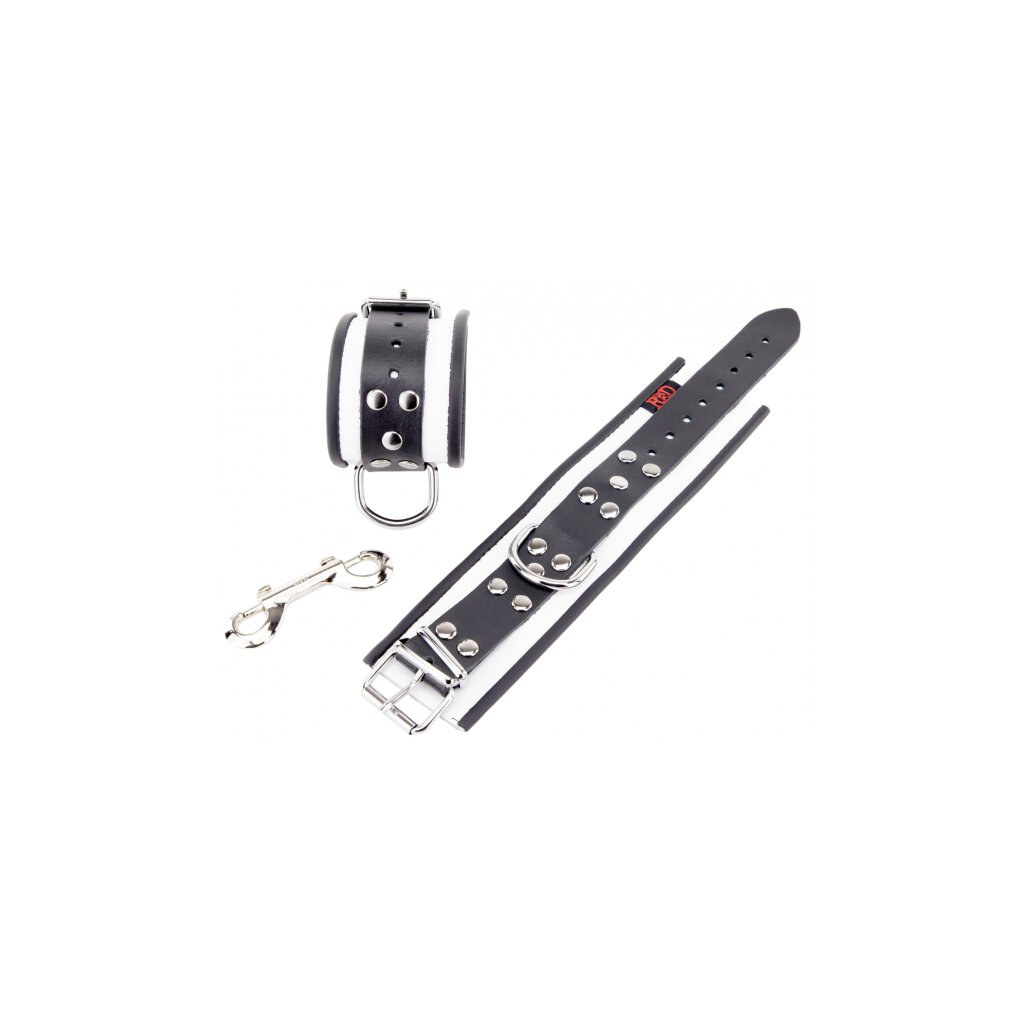 Diese Handschellen der Marke The Red sind in einem schwarz-weißen Kontrast gestaltet. Sie eignen sich ideal für Momente der Unterwerfung. Sie haben eine Breite von 6,5 cm und eine dünne Dicke. Die Fesseln sind aus Metall. Sie werden mit einem abnehmbaren Metallkarabinerhaken geliefert. Umfang von 21 bis 32 cm. Aus echtem Rindsleder gefertigt. Gewicht: 238 gr / Breite: 9.0 cm / Tiefe: 3.5 cm / Höhe: 37.0 cm