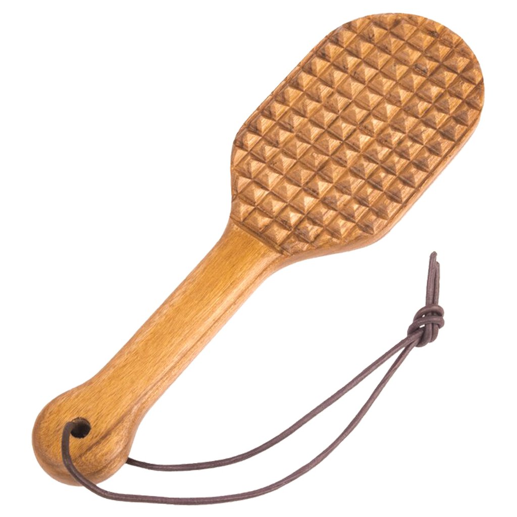 Lisse d'un côté, texturé de l'autre, ce terrible morceau de bois tourmente autant qu'il dompte avec une tête de 3,7 pouces de large dotée de 14 rangées de dents pour adoucir vos fesses lors de l'impact. Retournez la pagaie pour des sensations fortes et gardez votre sujet en haleine.