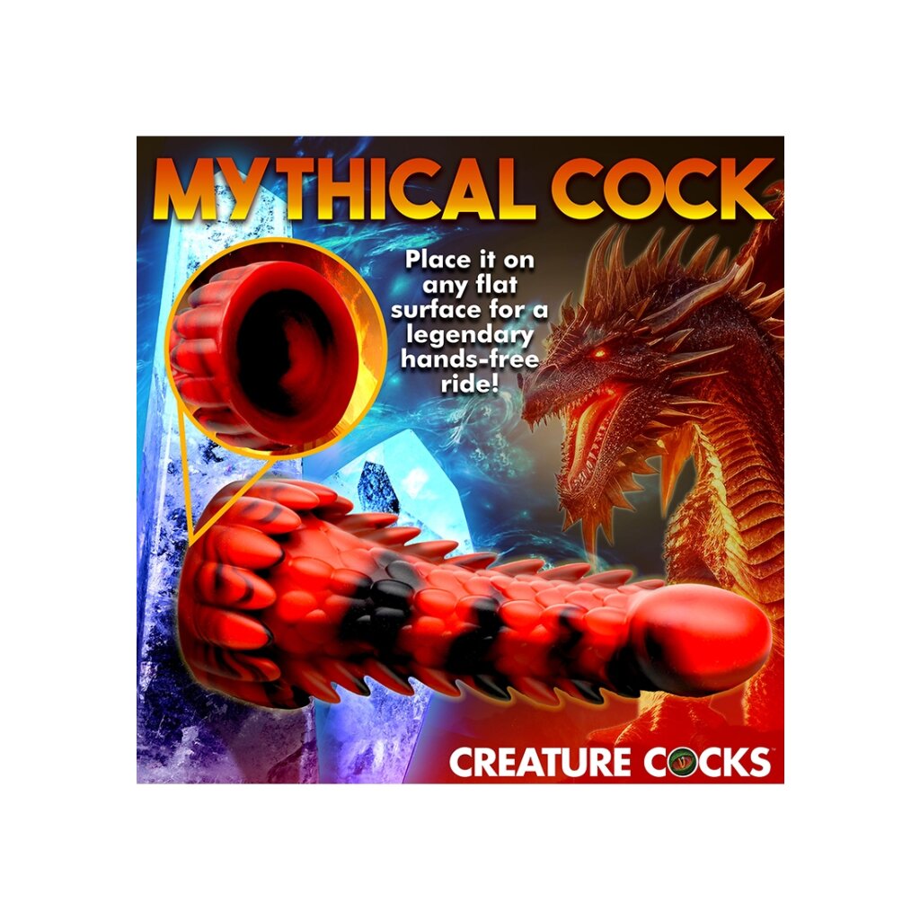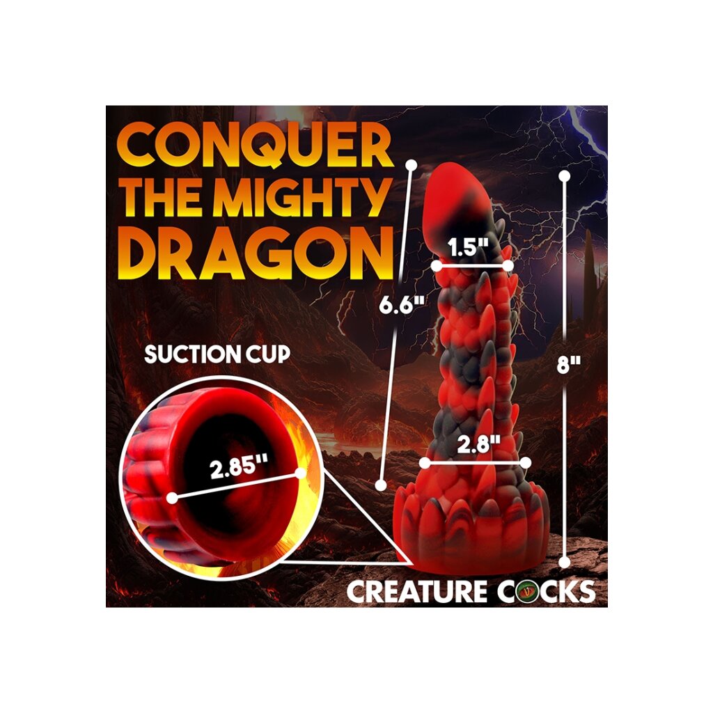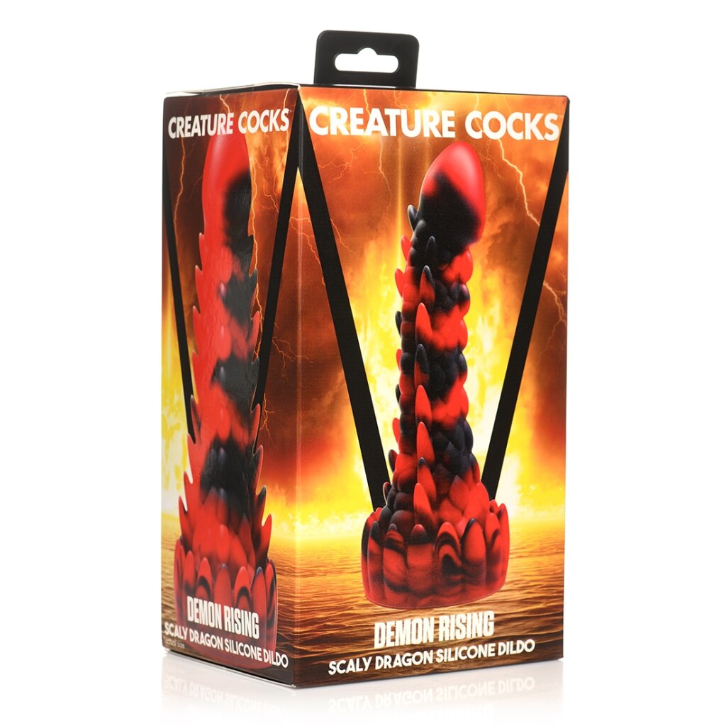 This scaly, dragon-inspired dildo impresses with its red and black design.
