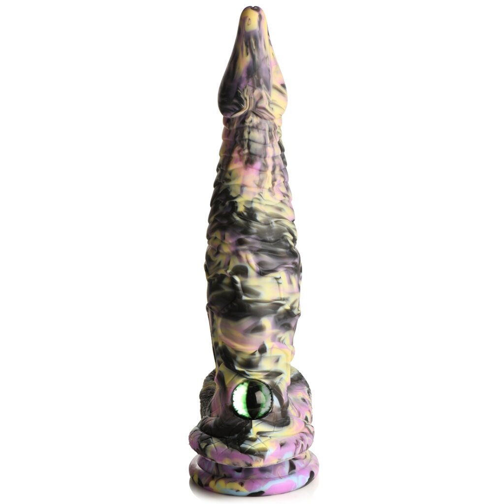 The snake-like body of this sexy shaft features a long, ribbed shaft, protruding veins and an eye at the base that brings an intimate and mystical element to your play.
