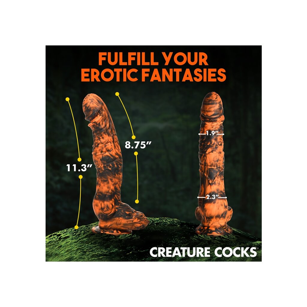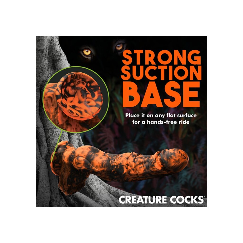 The fleshy head, thick curved shaft and claw-shaped testicles at the base provide extra excitement