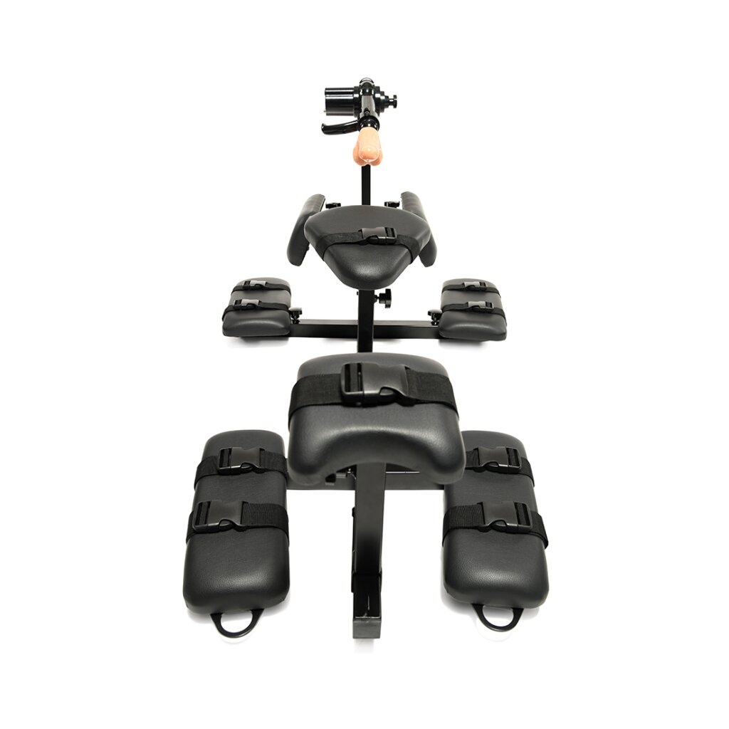 Die C-förmige Nackenstütze und die gepolsterten Kissen aus veganem PU-Leder bieten maximalen Komfort, während die 4 Befestigungspunkte für Manschetten an jedem Glied für Vielseitigkeit im Spiel sorgen.