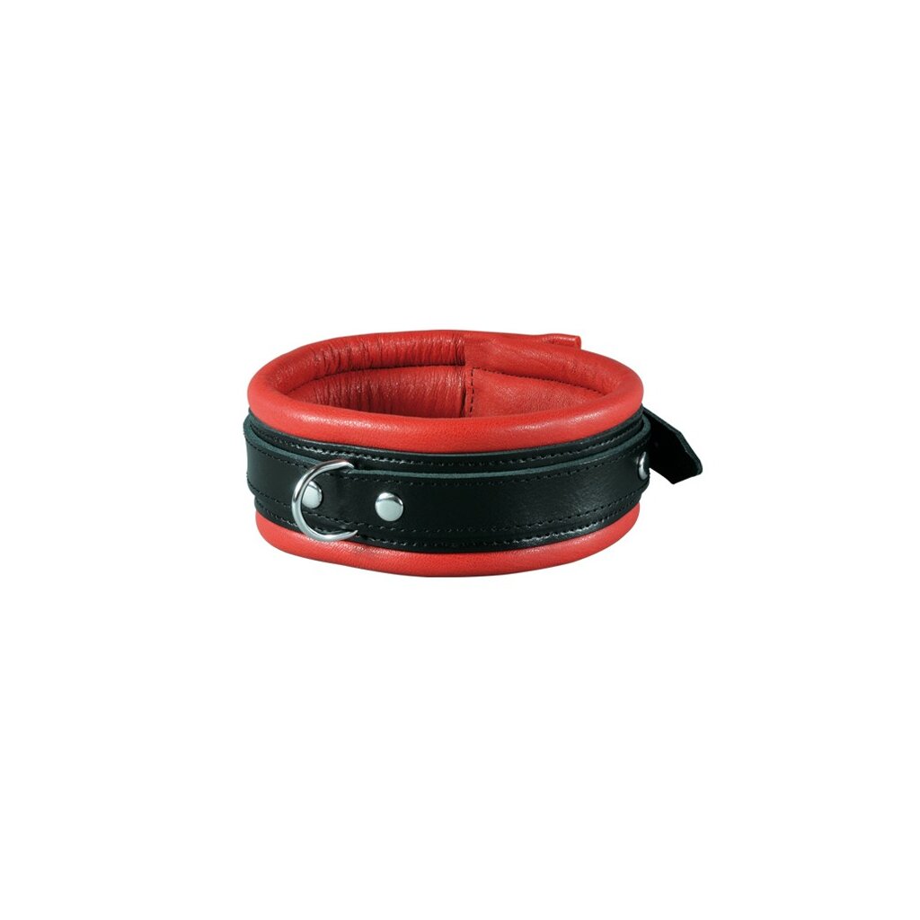 Hochwertige gepolsterte Halsfessel aus weichem Rindsnappaleder in Schwarz-Rot