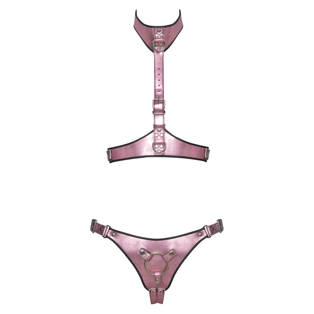 Das BK StrapOn Set 2XL Rosa von You2Toys bietet dir alles, was du für intensive Rollenspiele brauchst. Bestehend aus einem stilvollen Brust-Harness und einem funktionalen Strap-on-Jock, überzeugt dieses Set in schillernder Rosé-Metallic-Optik mit silberfarbenen Metallringen und Nieten für ein verführerisches Bondage-Design. Die glänzende Oberfläche macht dich zum Blickfang, während die weiche Innenfütterung in Schwarz für angenehmen Tragekomfort sorgt.