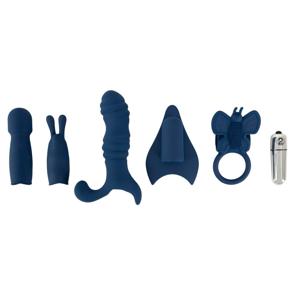 6-teiliges Toy-Set von Magic Shiver bestehend aus Vibrobullet zum Einführen in den Penisring mit Klitorisreizer oder in einen der 4 Aufsätze (Prostata-Plug, Bunny-Stimulator, Massagestab und Finger-Aufsatz). Die Vibrationen lassen sich bequem per Knopfdruck steuern. Ein aufregendes Spaß-Set für eine Vielzahl von Stimulationsspielen – allein oder zu zweit!