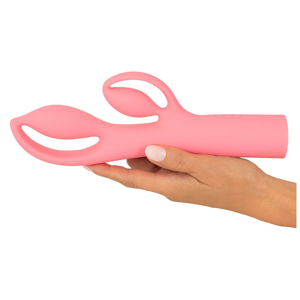 In einem extravaganten Design gestaltet, verwöhnt dieser Vibrator sowohl Deine Vagina als auch Deine Klitoris gleichzeitig. Mit 2 Motoren in jedem Arm und 12 Vibrationsmodi, die bequem per Knopfdruck steuerbar sind, bietet er Dir eine Vielzahl von stimulierenden Möglichkeiten. Der spezielle Modus ermöglicht es den Vibrationen, automatisch zwischen den Motoren hin und her zu wechseln, was ein aufregendes Wechselspiel von Innen- und Außen-Stimulationen schafft. Die leichte Flexibilität des Vibrators passt sich angenehm an Deinen Körper und Bewegungen an. Hergestellt aus Silikon mit Soft Touch Textur für höchsten Verwöhnkomfort und leichtes Einführen. Wasserdicht für Spaß in der Badewanne, im Pool oder unter der Dusche, bietet dieser Rabbitvibrator grenzenlose Möglichkeiten für sinnliche Abenteuer. Mit dem inkludierten USB-Ladekabel kannst Du Deinen Rabbitvibrator jederzeit bequem aufladen und ununterbrochenes Vergnügen genießen.