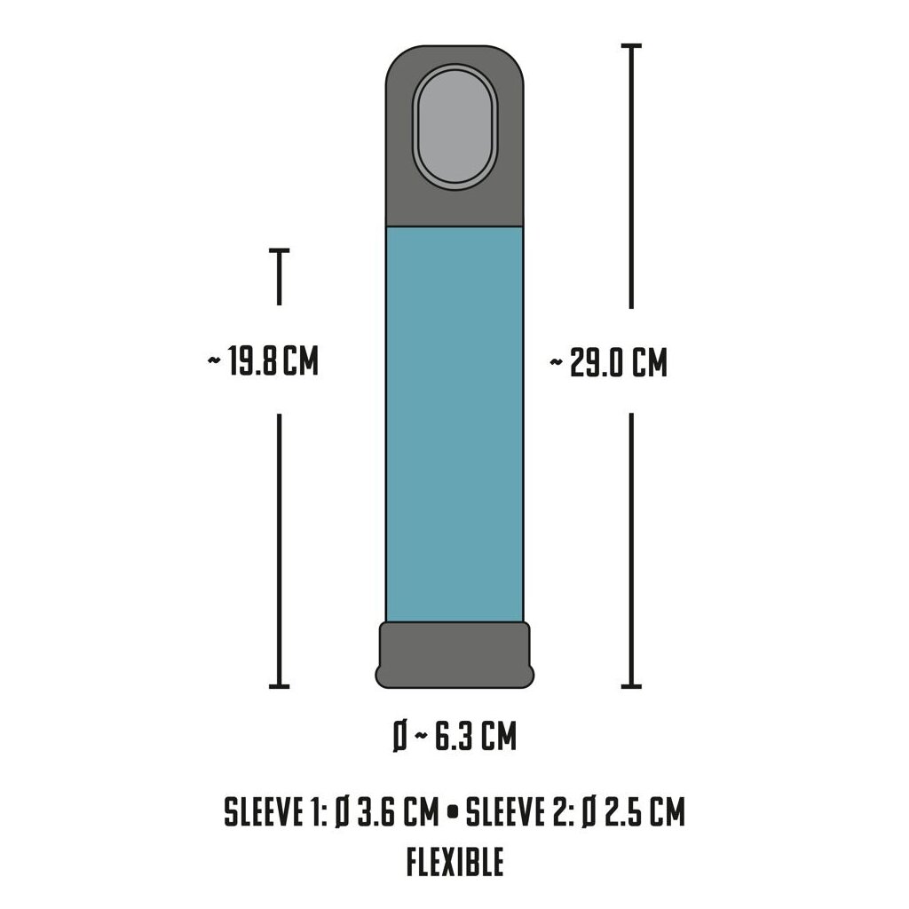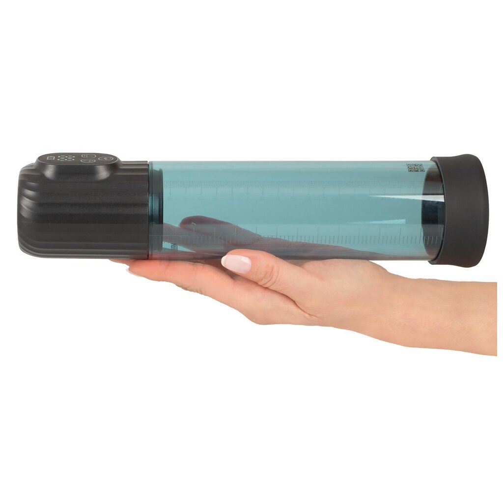 Le cylindre transparent avec échelle de mesure (cm et pouces) génère rapidement et confortablement l'aspiration sous vide. Le pénis peut gonfler jusqu'à atteindre sa taille et sa forme maximales. Les modes d'aspiration et le niveau de charge de la batterie peuvent être vérifiés sur l'écran LED. L'appareil est livré avec deux manchettes en silicone doux et soyeux de diamètres différents pour une étanchéité parfaite entre le cylindre et le corps.