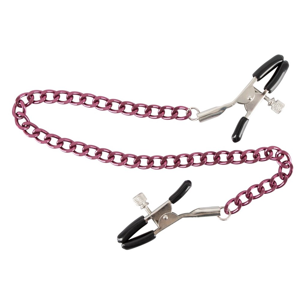 Ces pinces à tétons réglables reliées par une chaîne violette séduisante sont conçues pour stimuler les sens et accroître le plaisir jusqu’à son apogée. Les embouts en caoutchouc assurent une prise ferme et agréable, offrant une expérience à la fois excitante et confortable.