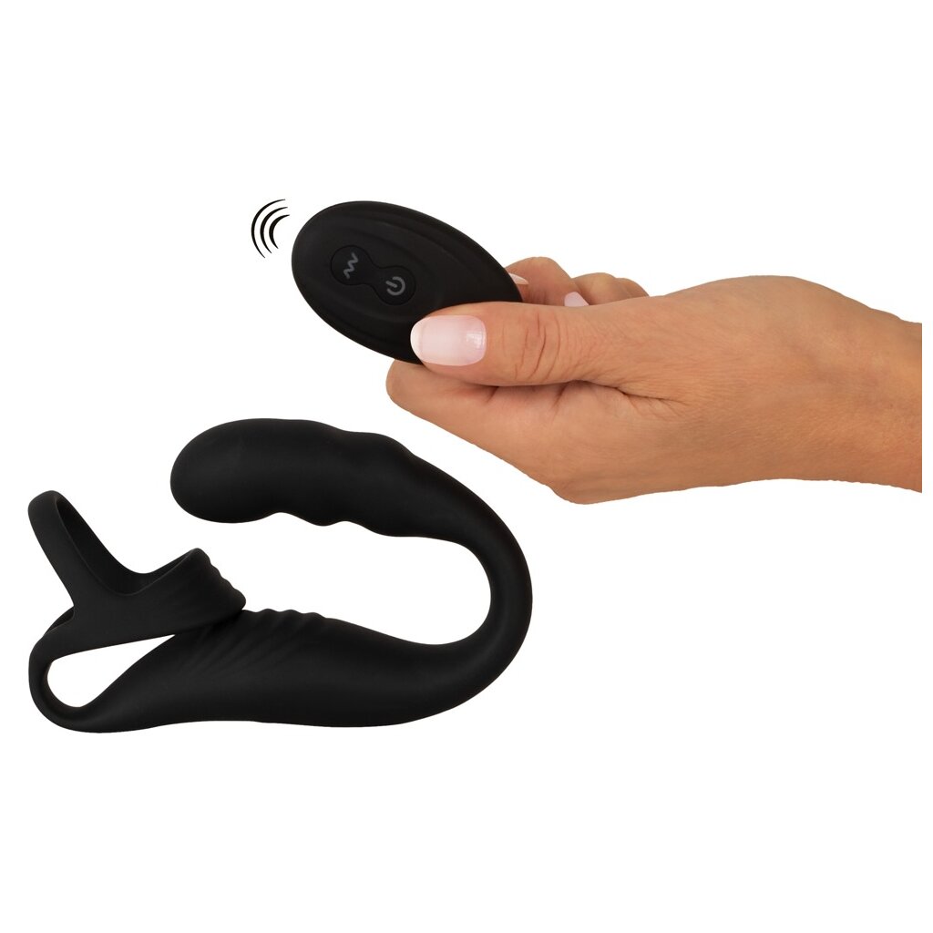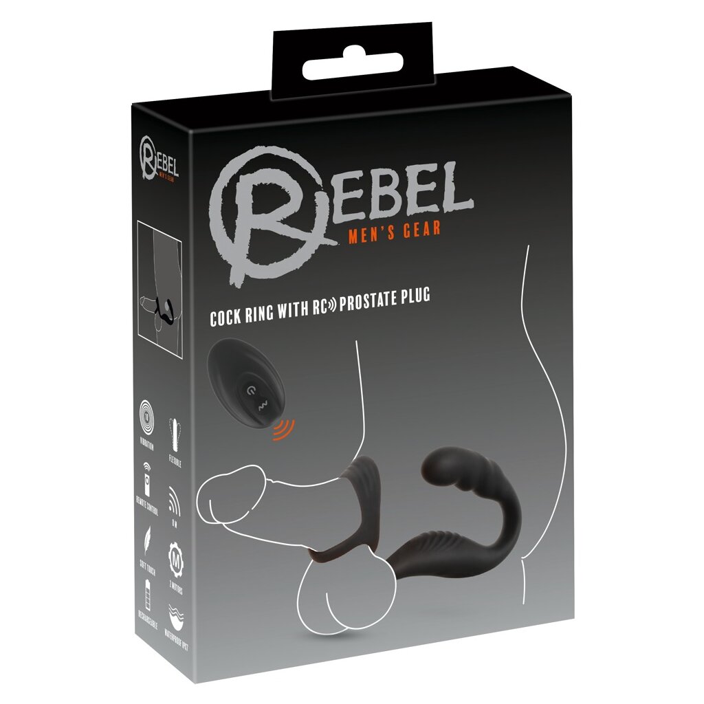 Der Cock Ring with RC Prostate Plug von Rebel kombiniert ein zupackendes Penis-/Hodengeschirr mit einem Perineum- und einem Prostata-Vibrator. Für intensives Rundum-Verwöhnen am und im Hinterstübchen!