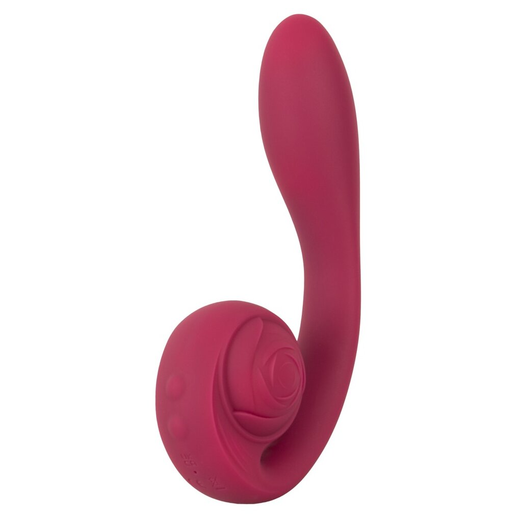 La pointe conique masse le point G, tandis que la rose à l'extrémité de la tige stimule le clitoris de manière ciblée.