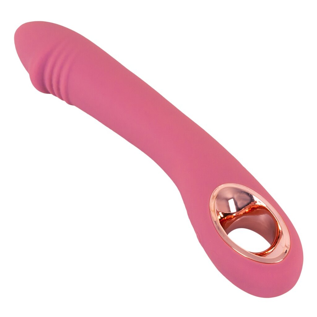 Elegant, handy Slim G-Spot Rose vibrator from You2Toys for intensive vagina massages with targeted G-zone stimulation - alone or as a couple. Ideally curved and equipped with a stylized structured glans, it pampers deeply and precisely in the G-spot. The 10 quiet vibration modes range from gentle to intense. Conveniently controlled at the touch of a button on the practical ring handle, which also ensures a secure hold and comfortable play. Even in the bath and shower, because the Slim G-Spot Rose is waterproof.