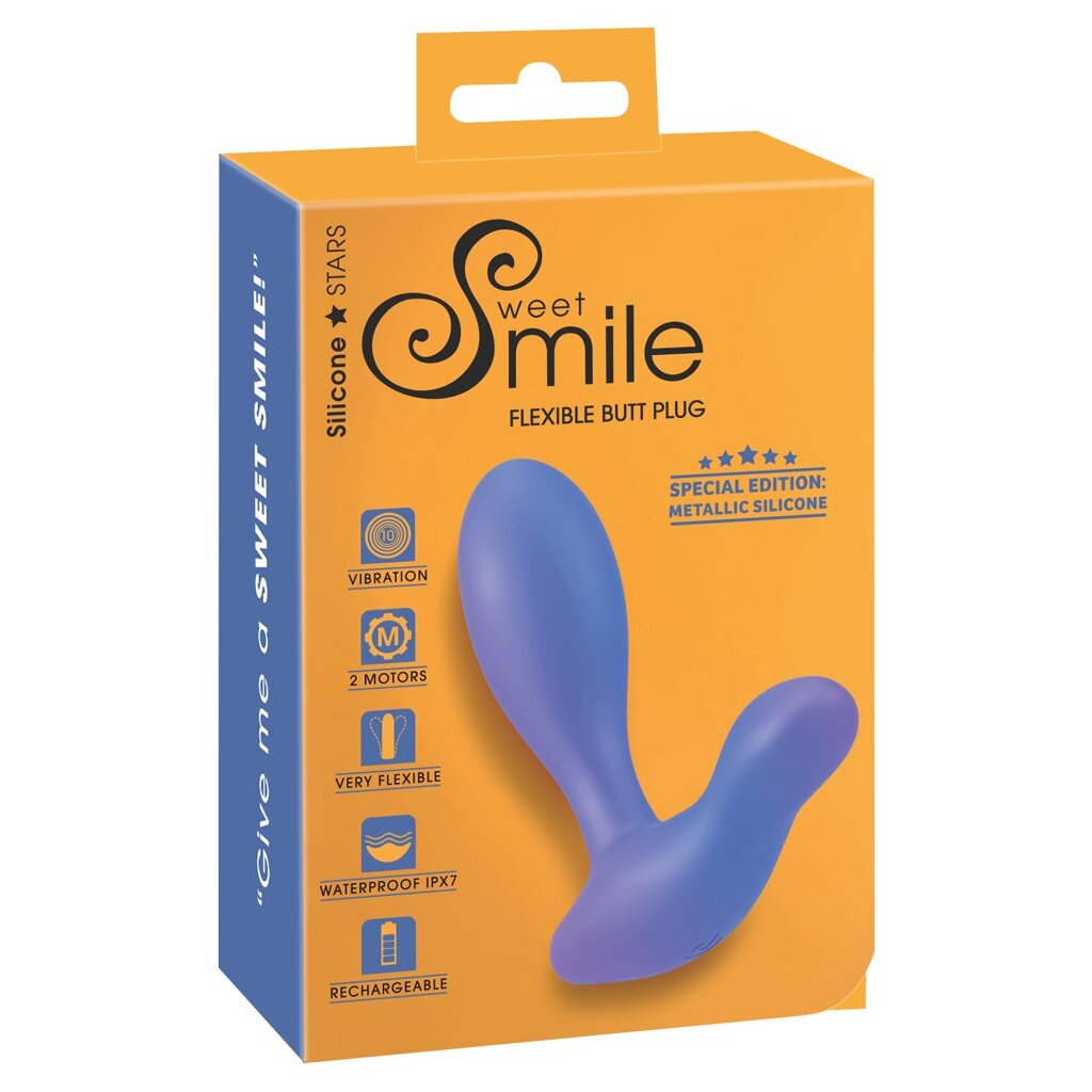 Double-motor anal vibrator Flexible Butt Plug from Sweet Smile in a sophisticated shimmering metallic glossy look. Perfect dual stimulation: intensively massages the prostate on the inside and pampers the perineum on the outside at the same time. Both ideally shaped arms are movable and flexible. For optimal adaptation to play, body and movements. Made from silky-soft silicone for easy insertion and maximum pampering and comfort (even over longer periods of time).