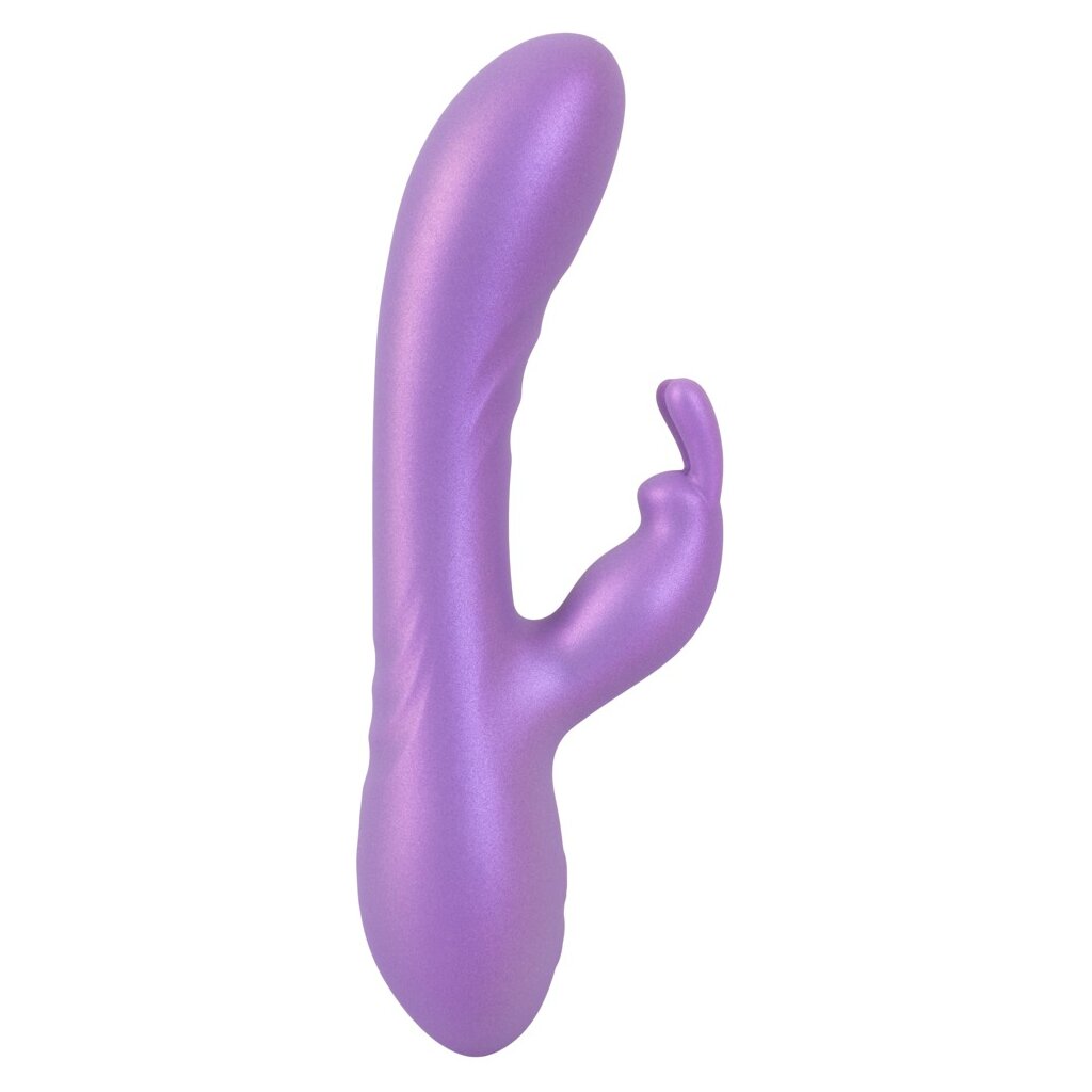 Handy vibrator Flexible Rabbit by Sweet Smile in a noble matt shimmering metallic-glossy look. Perfect dual stimulation: Intensively massages the vagina/G-zone on the inside and pampers the clitoris with the vibro-bunny on the outside at the same time. Both stimulatingly structured arms are movable and flexible. For optimal adaptation to play, body and movements. Made of silky soft silicone for easy insertion and maximum comfort.