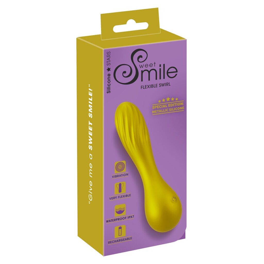 Handy vibrator Flexible Swirl from Sweet Smile in a noble matt shimmering metallic gloss look. In a discreet design made of silky soft silicone with a very flexible grooved head. Adapts perfectly to the body, movements and positions during solo and partner play.
