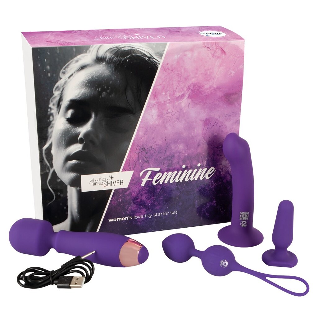 Das Women Love Toy Starter Set Feminine von Magic Shiver ist die ideale Einladung, die eigene Lust neu zu entdecken und auf sanfte Weise mit erotischen Toys zu experimentieren. Dieses exklusive 4-teilige Set vereint vier ausgewählte Premium-Produkte aus seidig softem Silikon – Massagestab, Analplug, Liebeskugel-Duo und Dildo – und bietet alles, was du für abwechslungsreiche Momente voller Genuss und Selbstentfaltung brauchst.